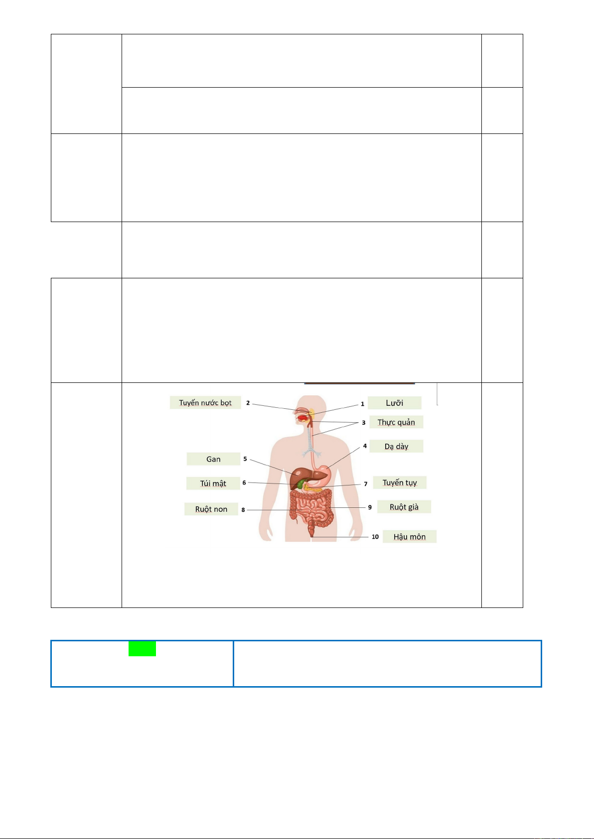 Câu 24. (1,0 điểm) Dựa vào hình ảnh dưới đây, hãy chú thích các cơ quan ở hệ tiêu hóa.