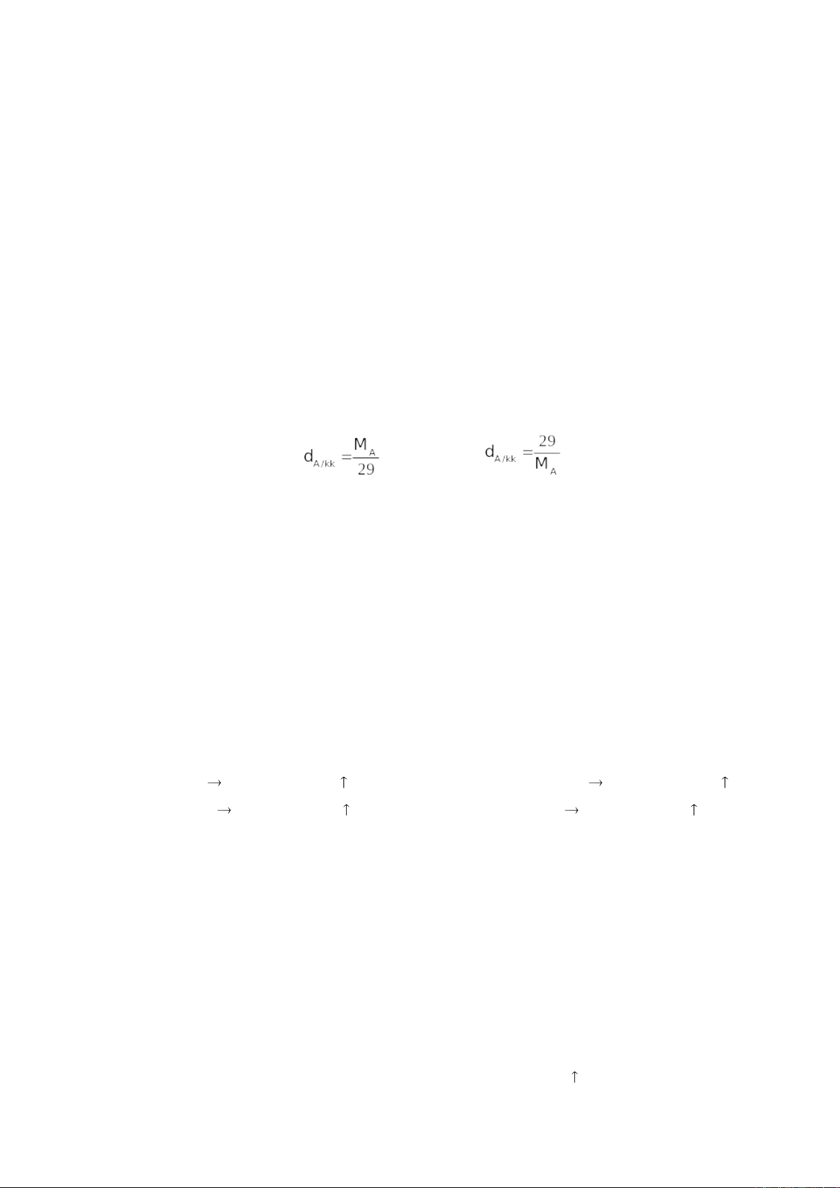 Câu 9. Công thức đúng về tỉ khối của chất khí A đối với không khí là