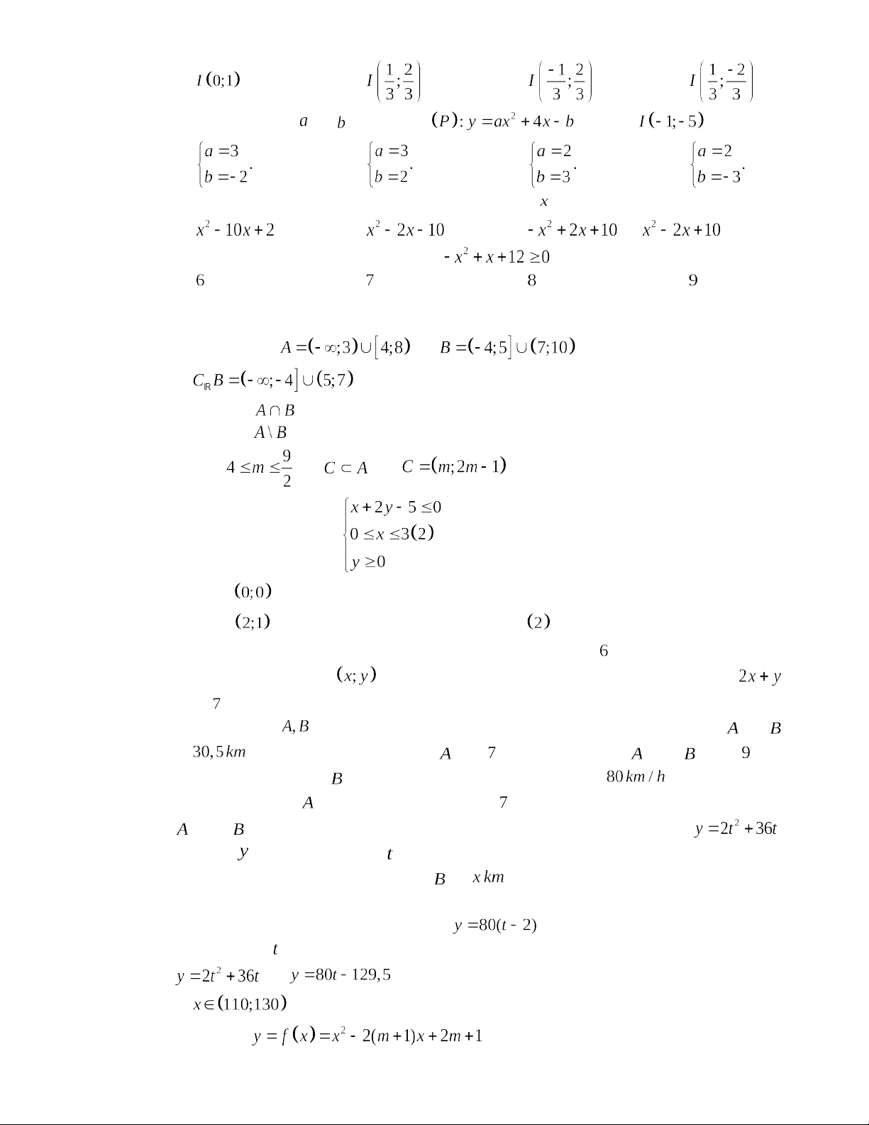 Câu 10: Xác định các hệ số và để Parabol có đỉnh .