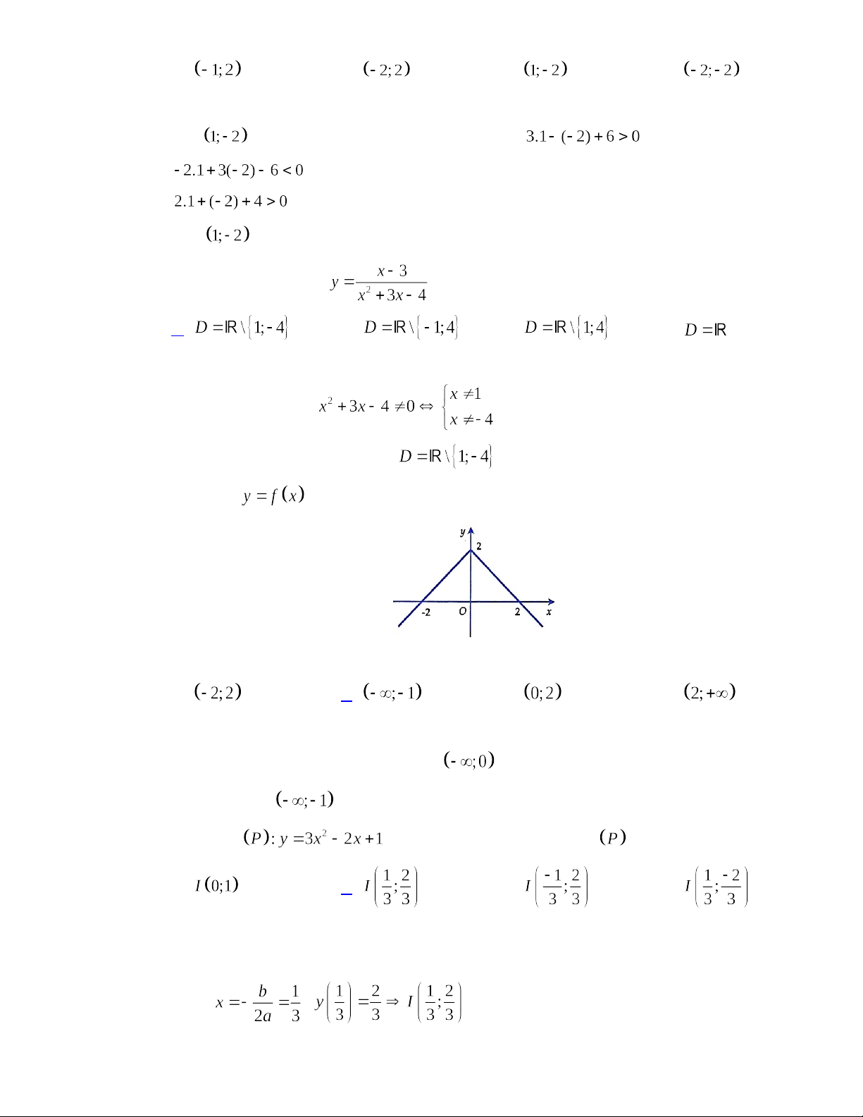 Câu 9: Cho parabol . Điểm nào sau đây là đỉnh của ?