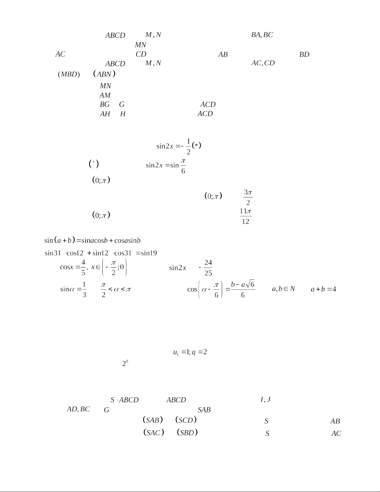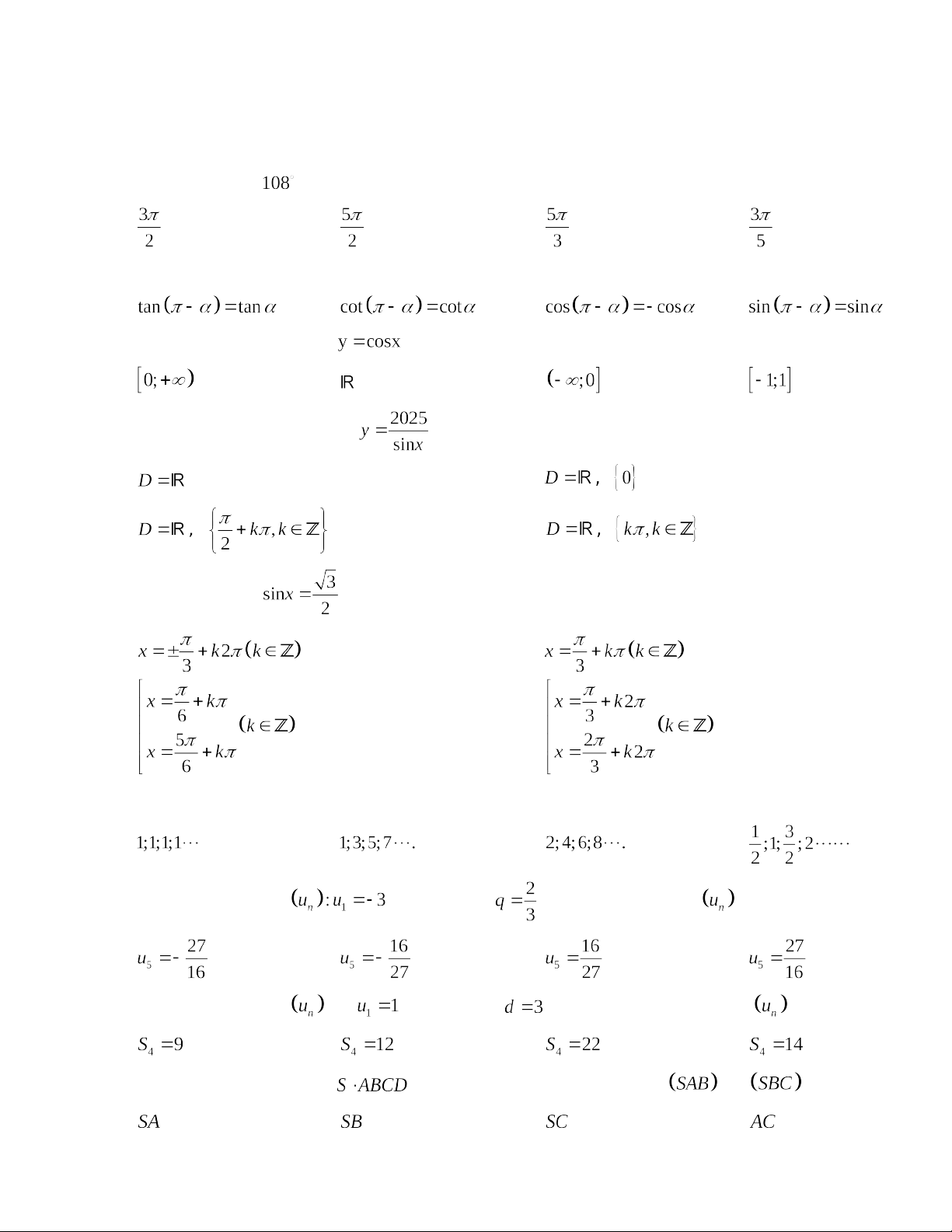Câu 1. Cho phương trình lượng giác . Khi đó: