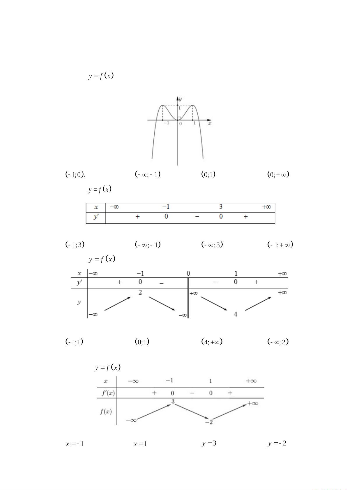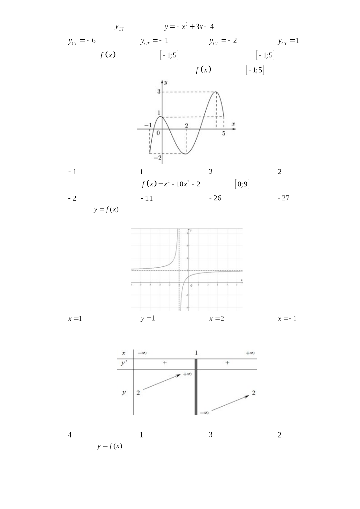 Câu 1. Cho hàm số có bảng biến thiên như sau:
