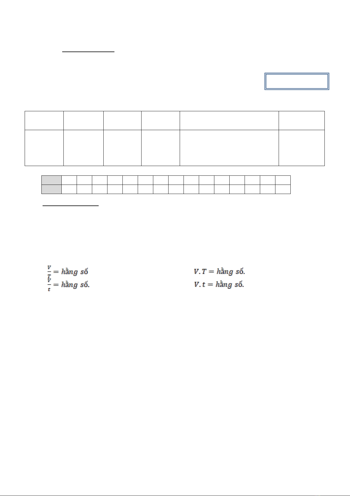 quan hệ giữa thể tích và nhiệt độ của khối khí