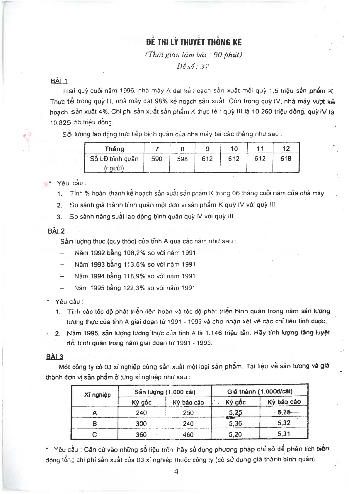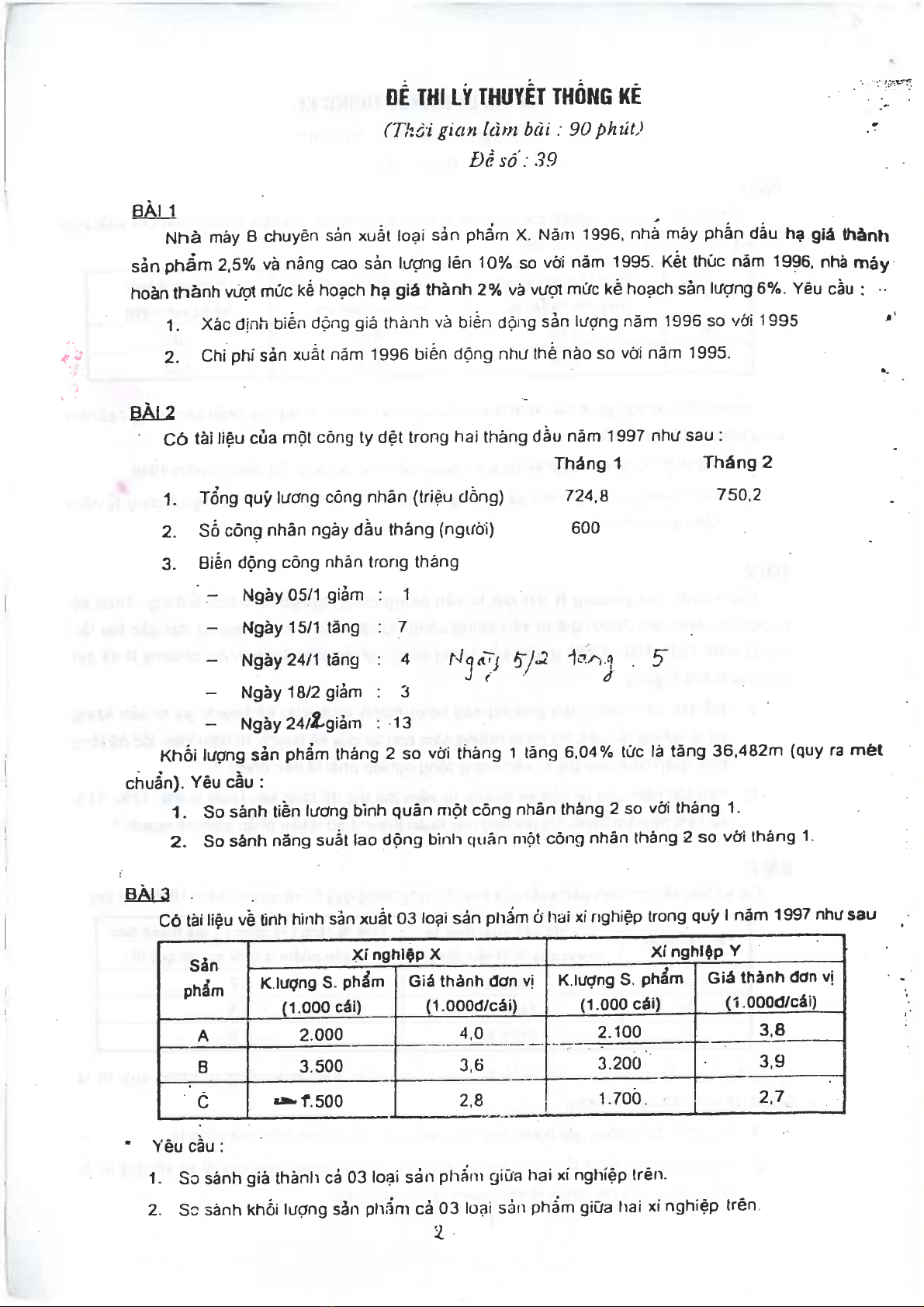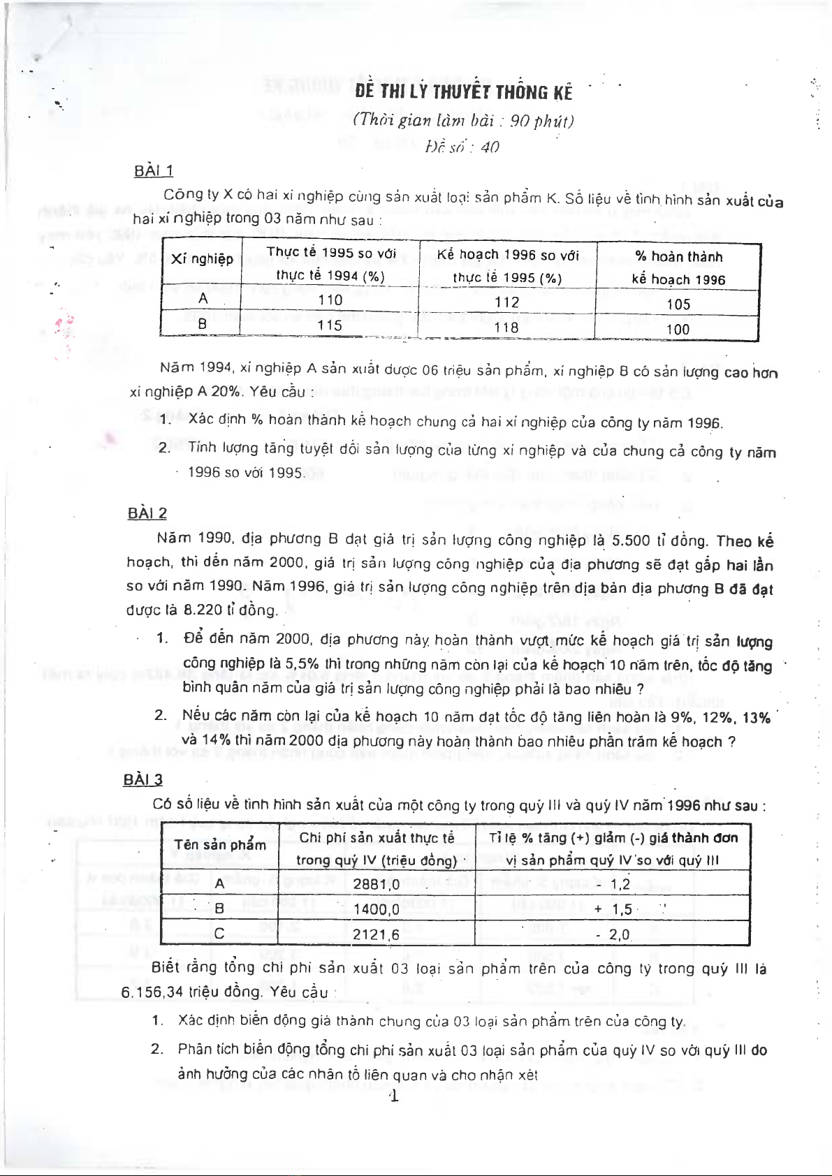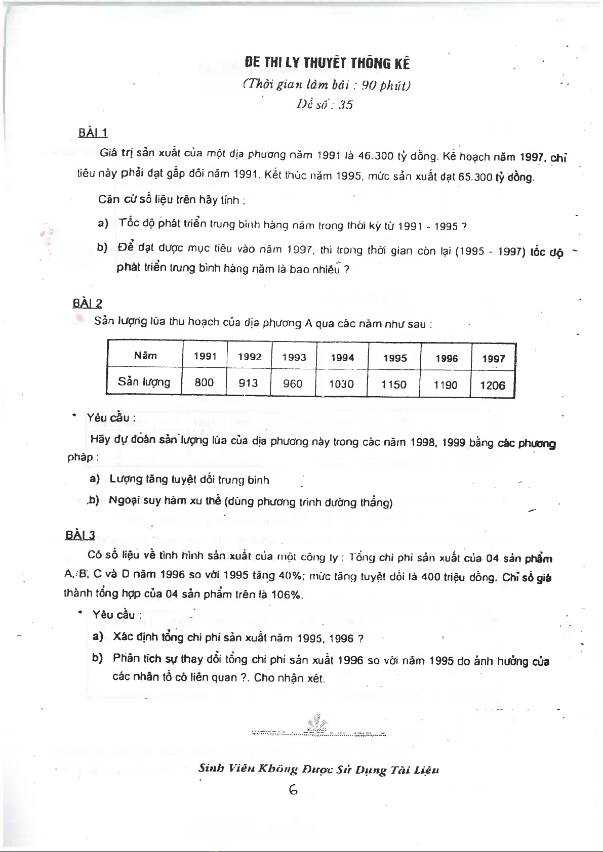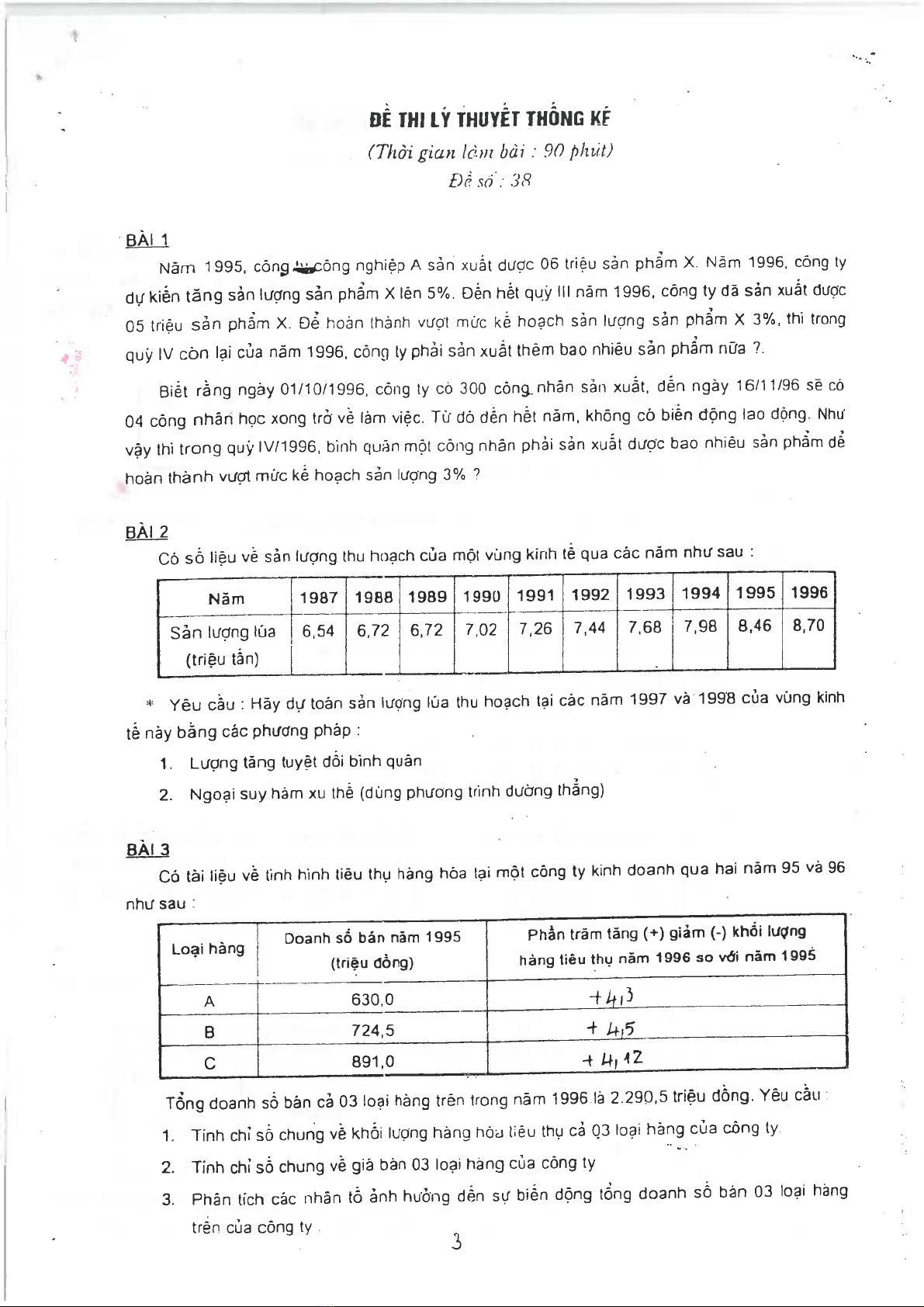 Bộ đề thi môn lý thuyết thống kê
