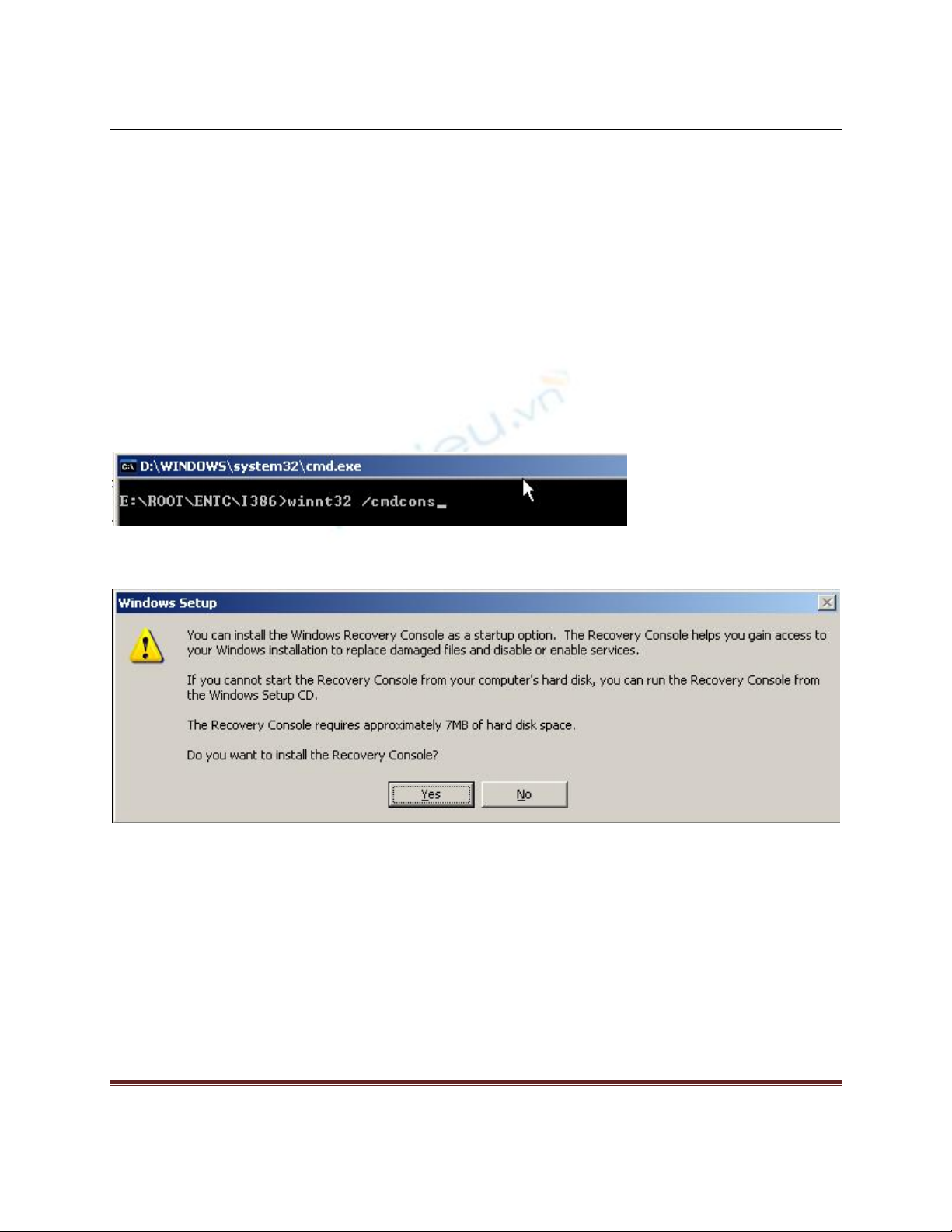 Chọn Yes để tiếp tục cài đặt Recovery Console