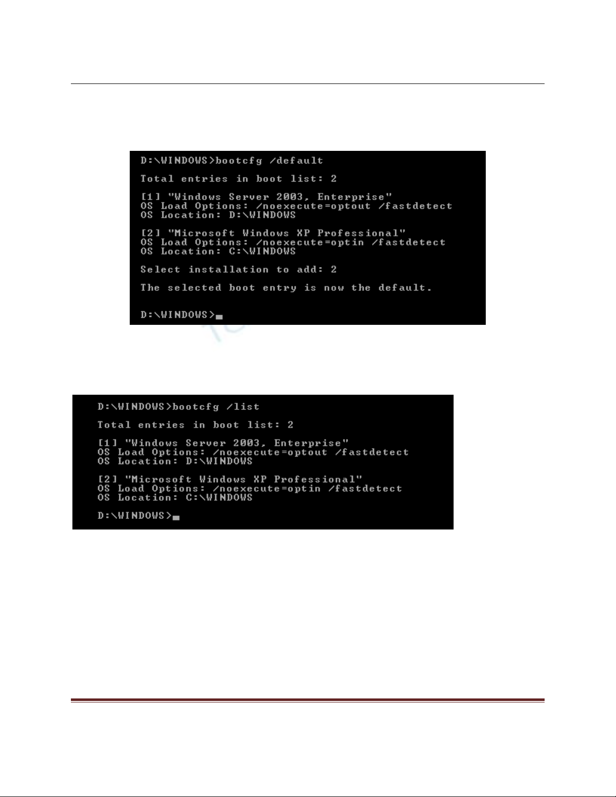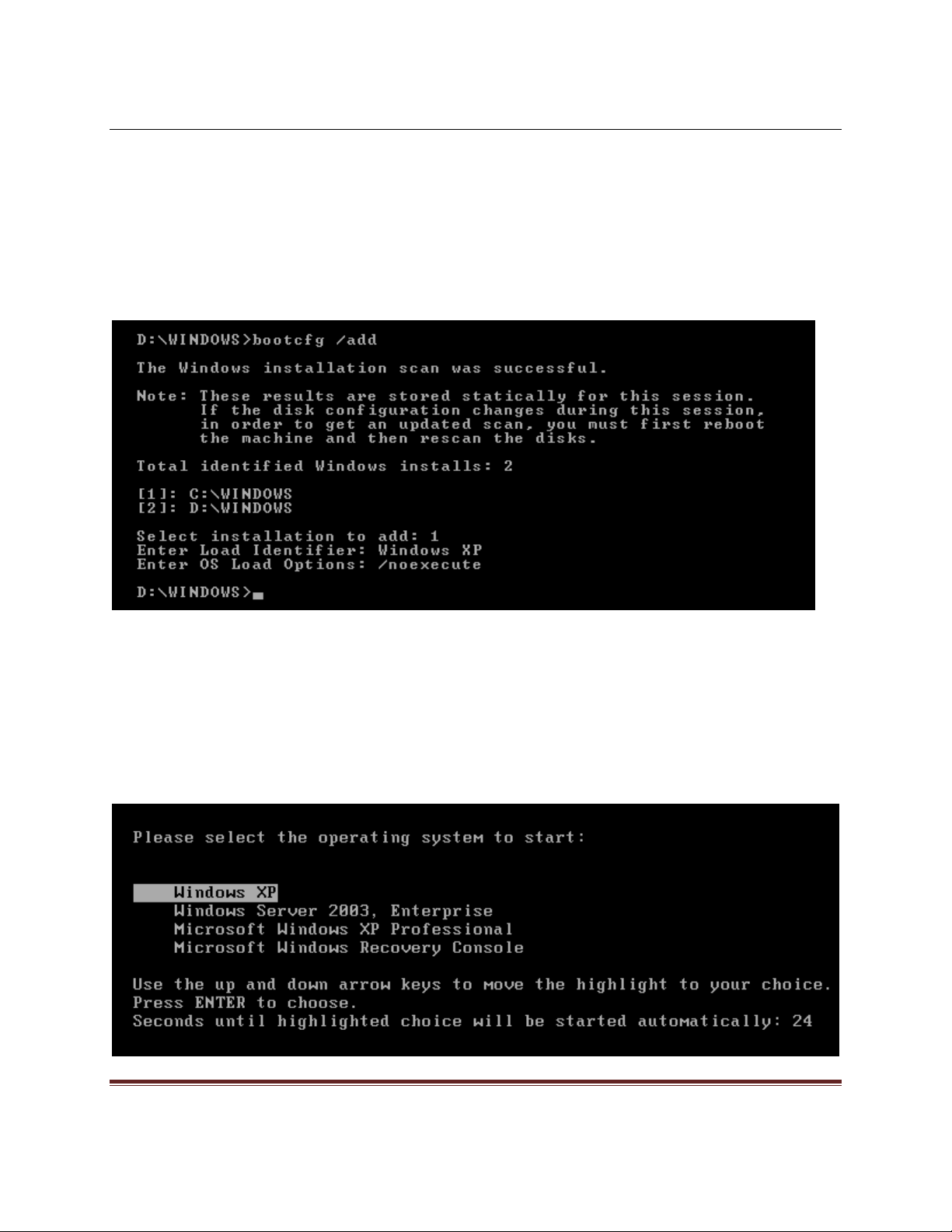 Chúng ta sử dụng lệnh bootcfg để thao tác với file boot.ini: