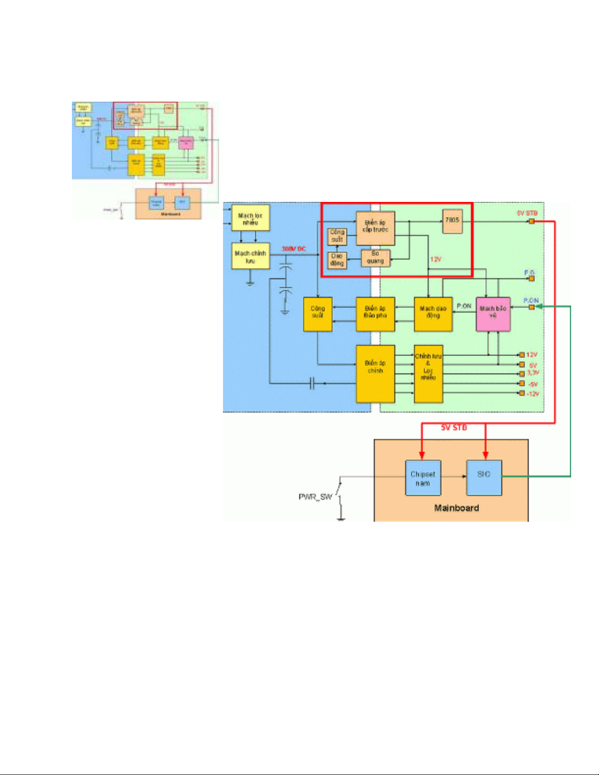 - Nguồn Stanby thường có công suất nhỏ khoảng 5 đến10W, nó có nhiệm vụ cung cấp điện áp cho mạch