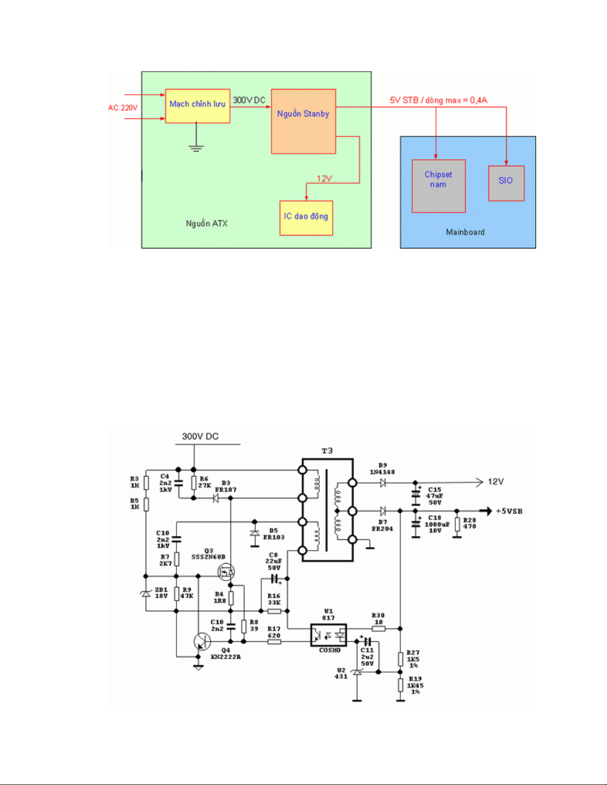 • Khi cấp điện cho nguồn ATX, mạch nguồn Stanby hoạt động ngay và cho ra hai điện áp