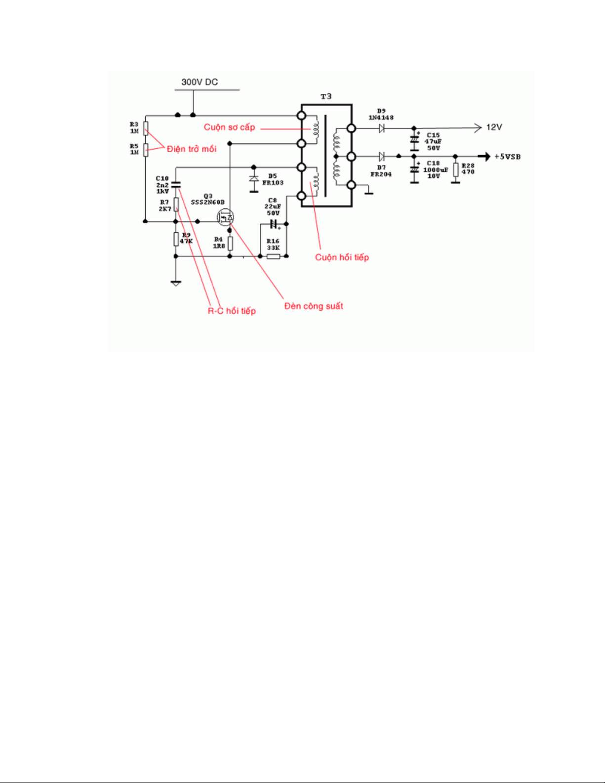 - Điện áp 12V cung cấp cho IC dao động của nguồn chính.