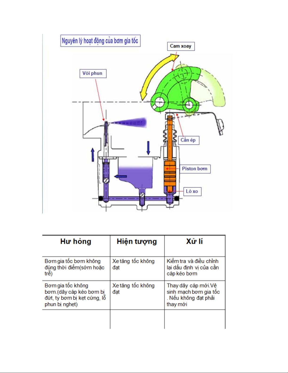 Bơm gia tốc có nhiệm vụ cung cấp một lượng xăng thích hợp khi người điều