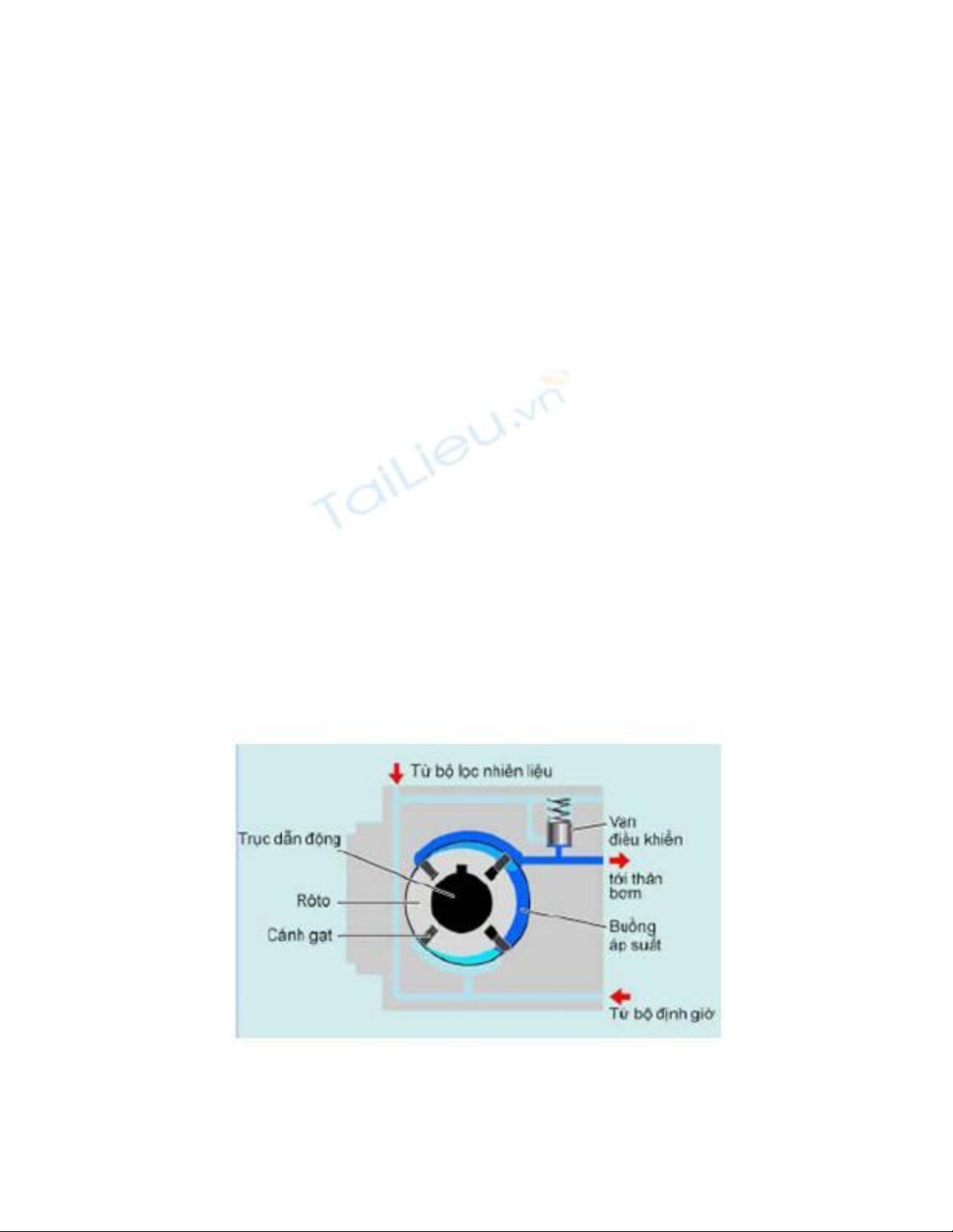 đến khoang xylanh. Bơm sơ cấp quay hút nhiên liệu từ bình nhiên liệu, qua bộ