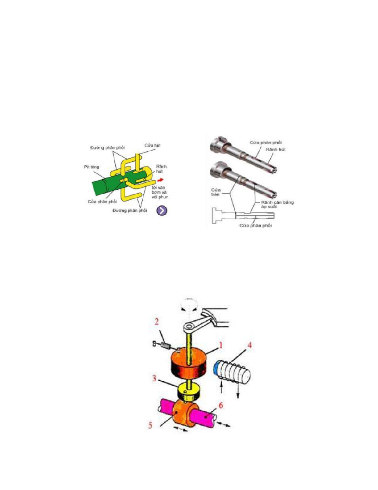 hút từ rãnh hút của piston, sau đó được nén mạnh qua van phân phối từ cửa van