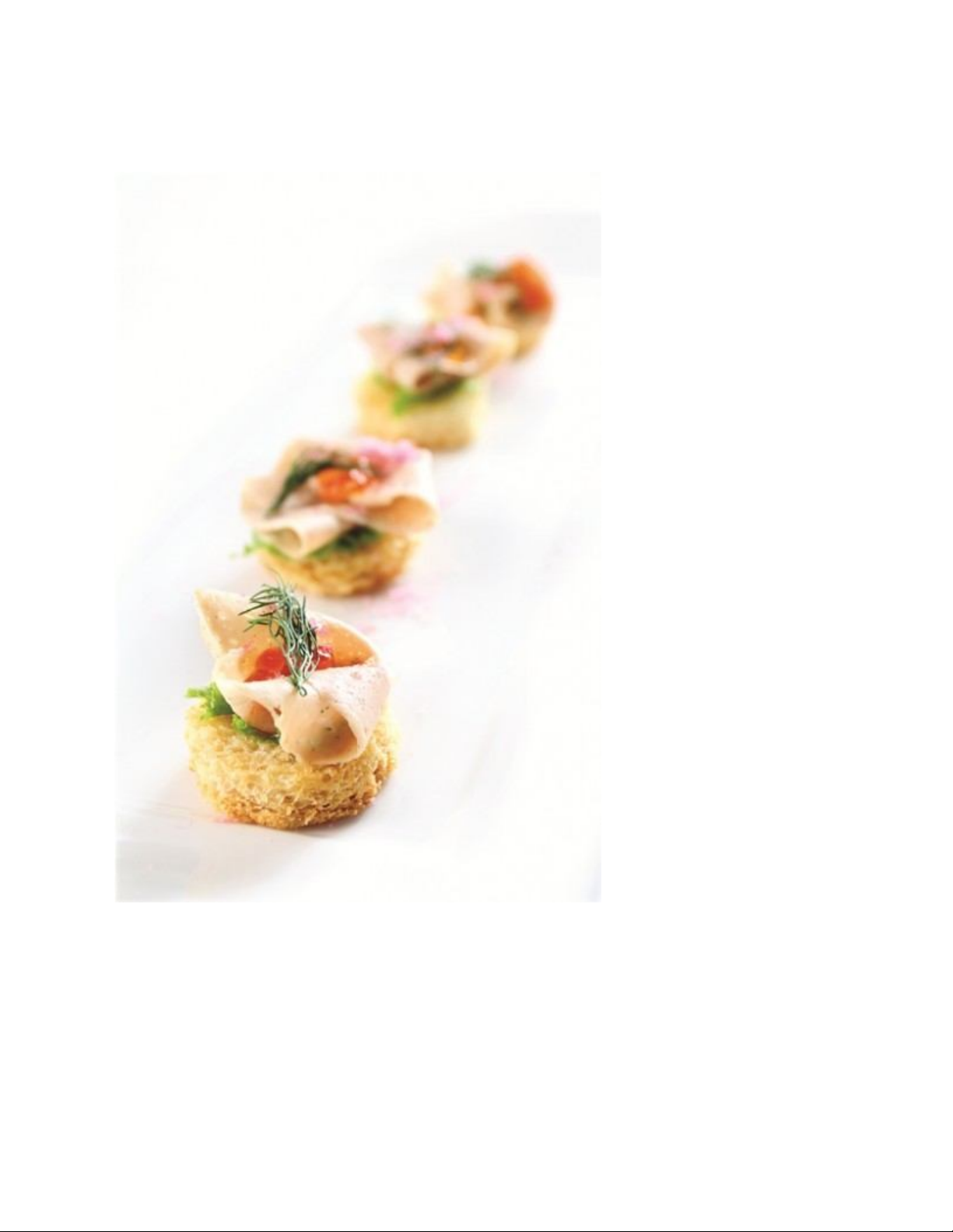 bắt xốt lên miếng bánh, đặt xà lách, cá hồi xông khói, trứng cá