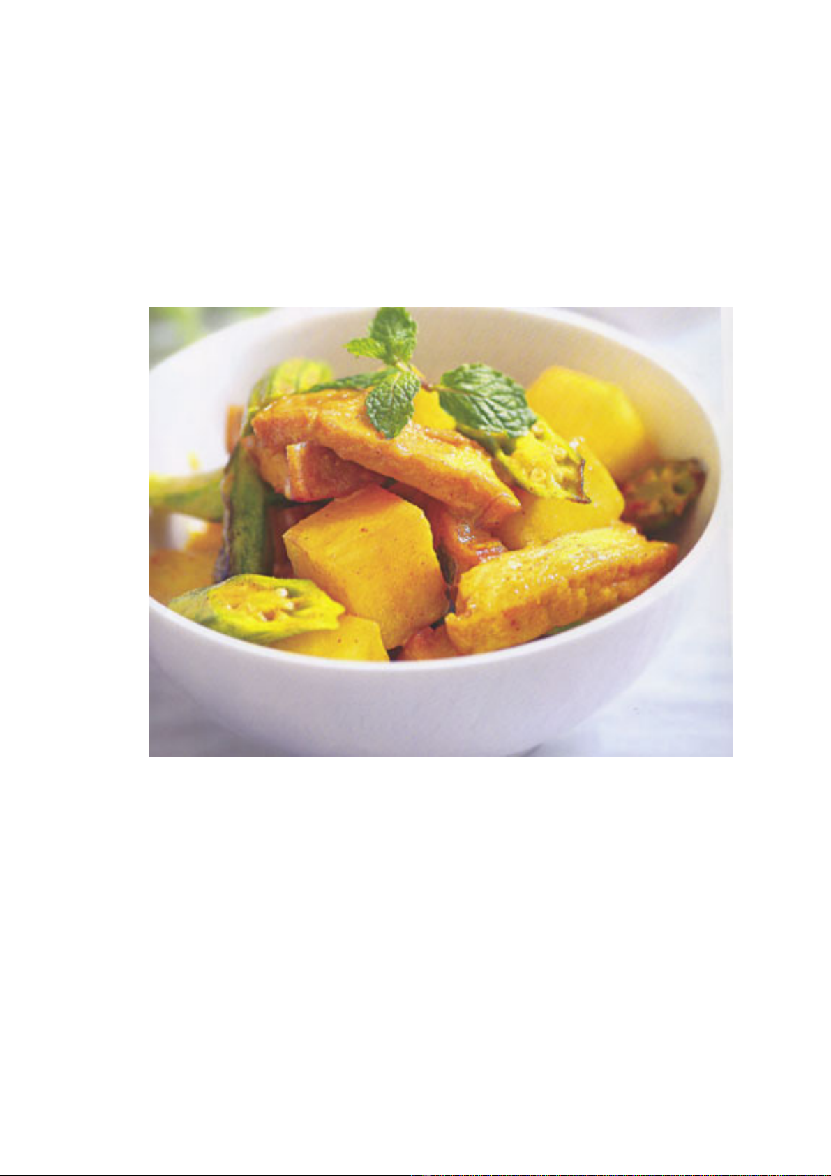 - Thái đậu hủ vừa ăn, chiên vàng sơ. Ướp đậu hủ, khoai tây, khoai lang với cà ri