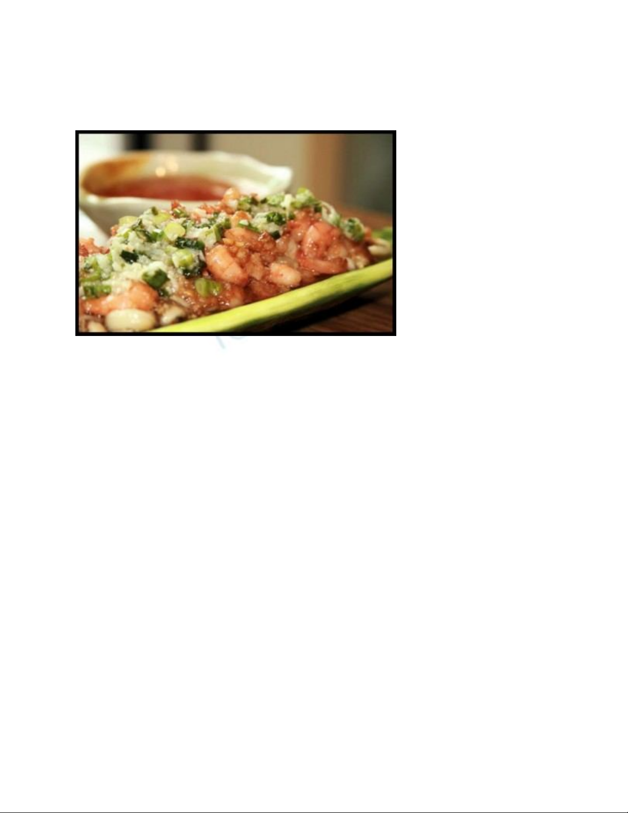 Tôm bóc vỏ, thái nhỏ, ướp dầu hào, đường (chút xíu muối thôi hoặc là không