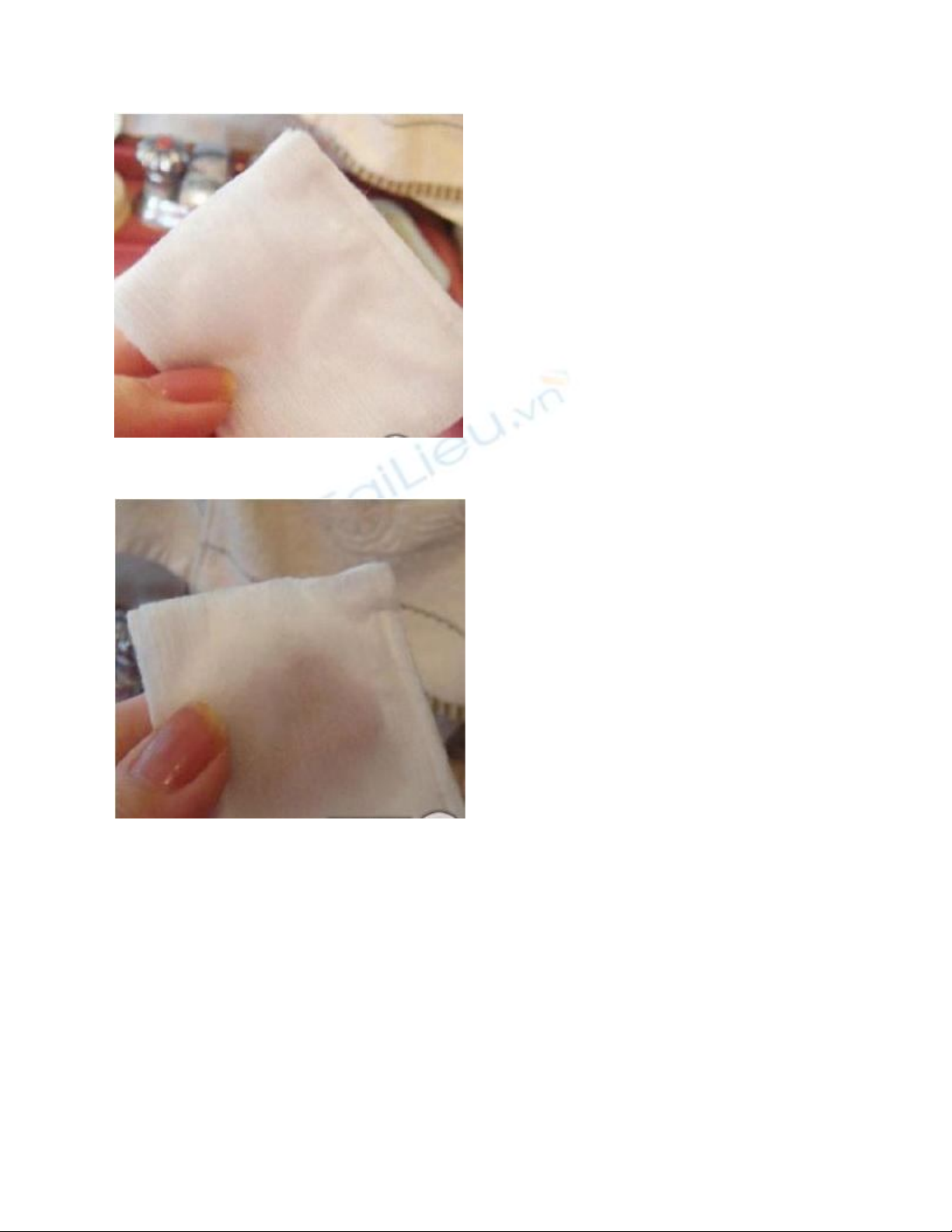 có thể gấp bông và đảo mặt bông để tiếp tục lau các vùng khác trên mặt.