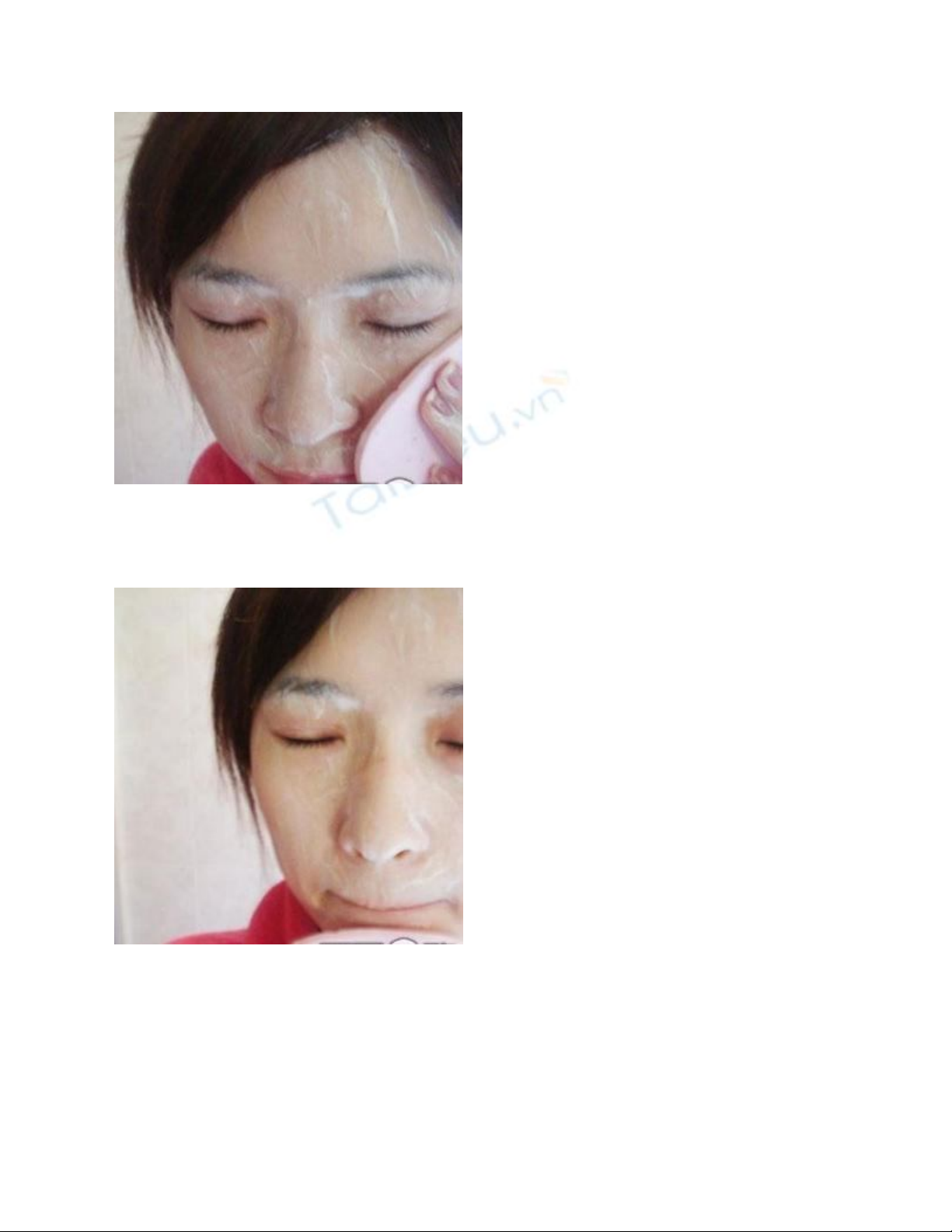 Sử dụng bông lau theo dọc từ trên xuống đến vùng mũi, các vùng khác trên mặt, bạn