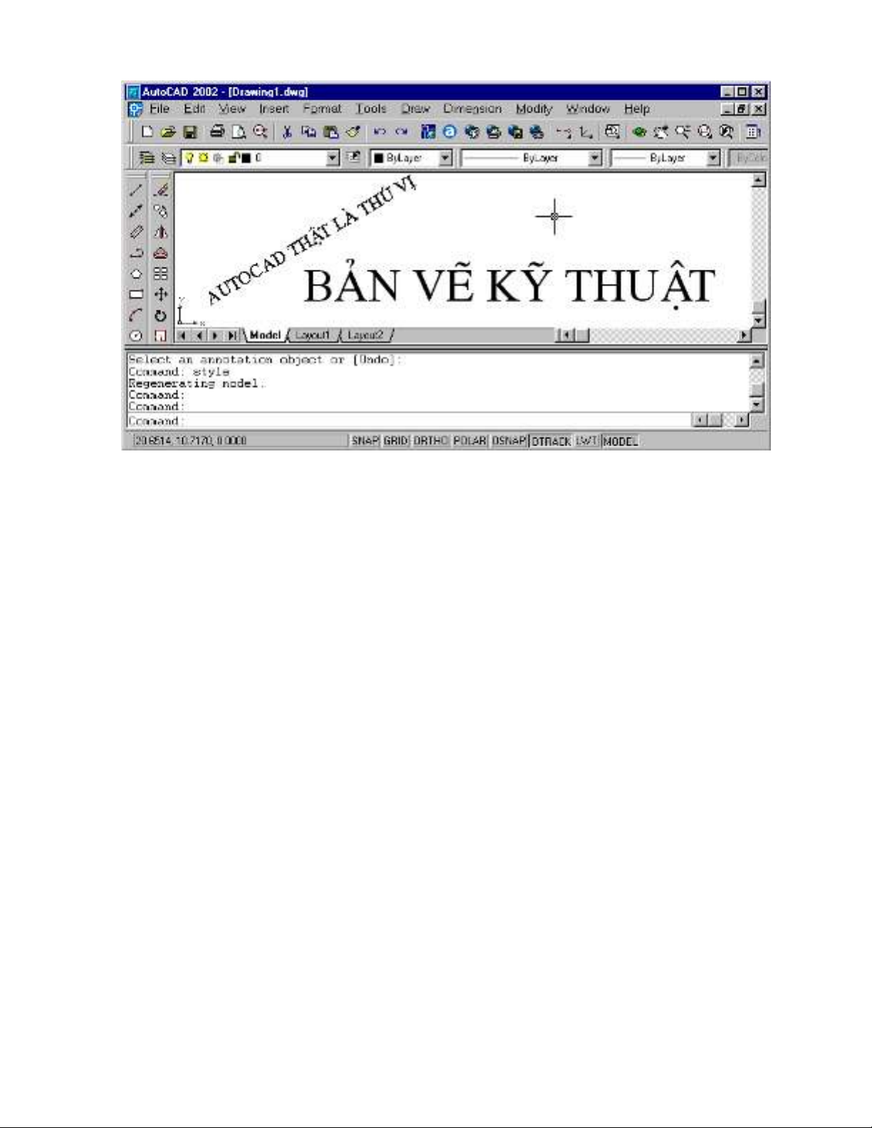 Đoạn văn bản trong Autotcad cũng là một đối tượng (tương đương các đối tượng Line,