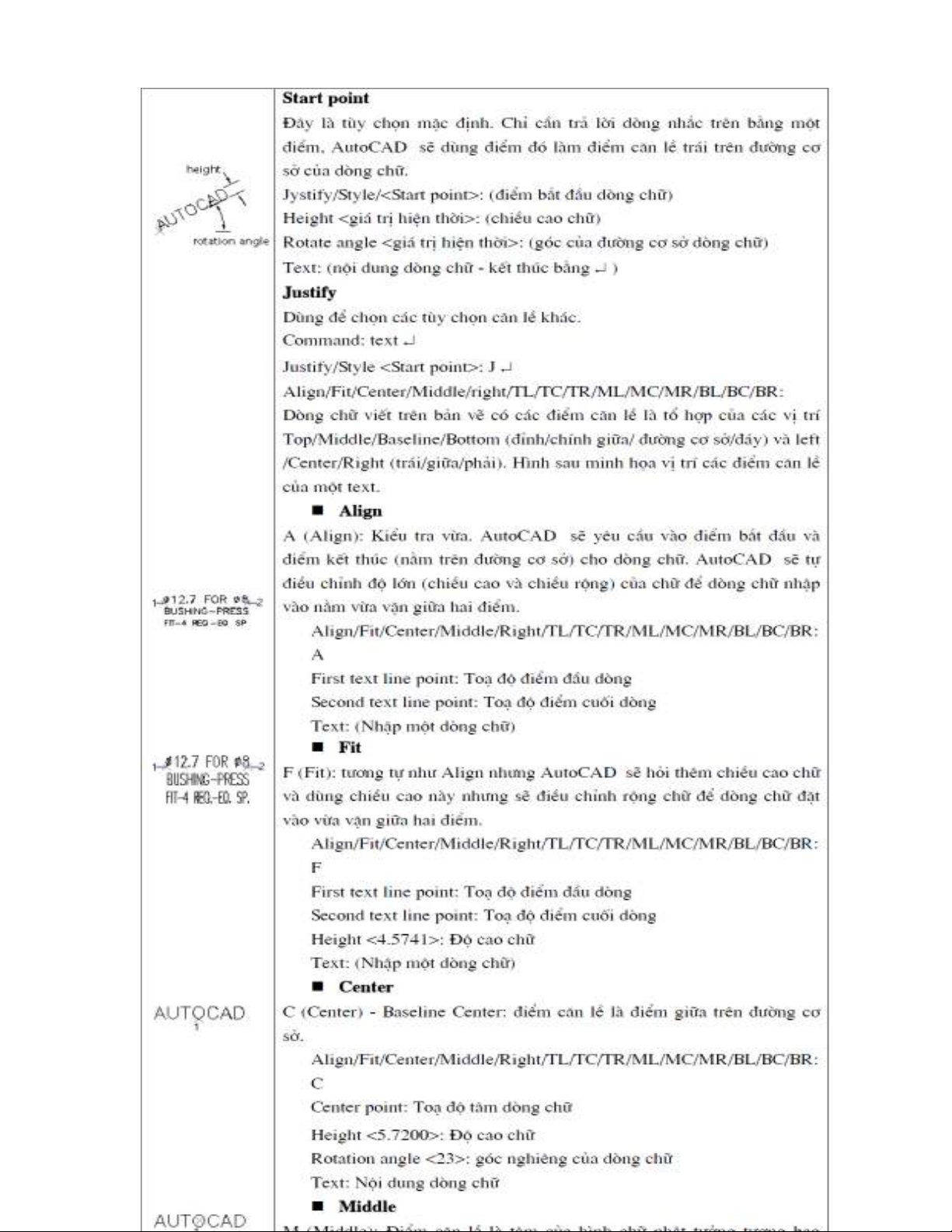 chữ J (Justify). Các khái niệm sử dụng trong lệnh TEXT và DTEXT được mô tả sau đây