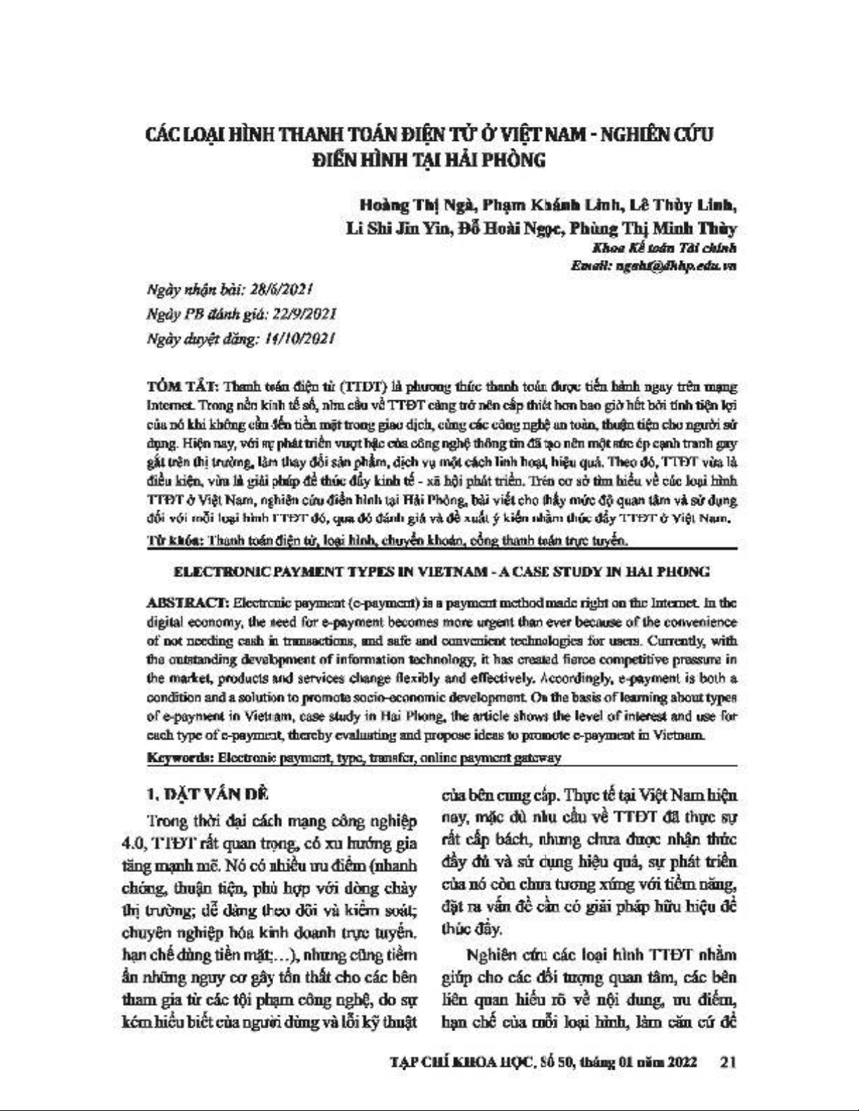 Các loại hình thanh toán điện tử ở Việt Nam - nghiên cứu điển hình tại Hải Phòng