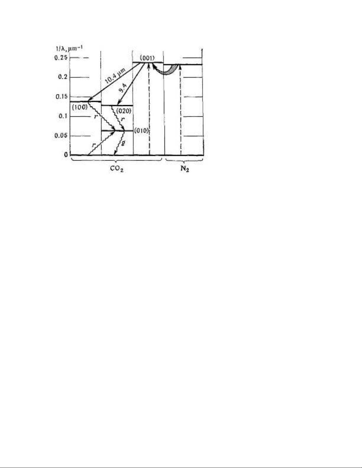 Hình 2. C ch ho t đ ng và các chuy n d i c a laser phân t COơ ế ạ ộ ể ờ ủ ử 2
