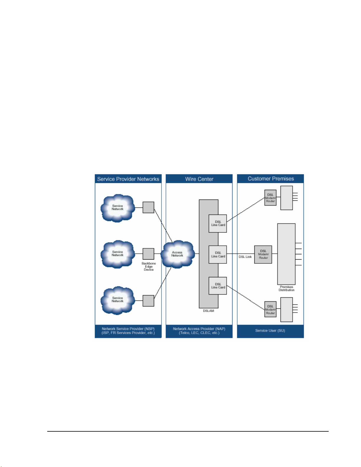 Người dùng kết nối tới NAP ngang qua một DSL mạch vòng nội hạt . Ở nơi tập trung đường dây ,