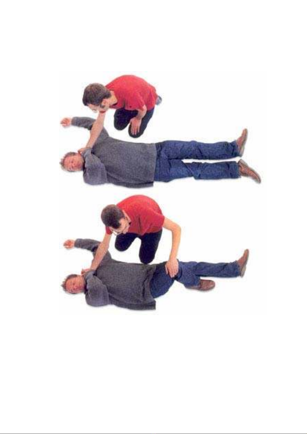 lăn nạn nhân về phía bạn, nằm nghiêng. Chỉnh đùi nạn nhân sao cho cả hông và gối