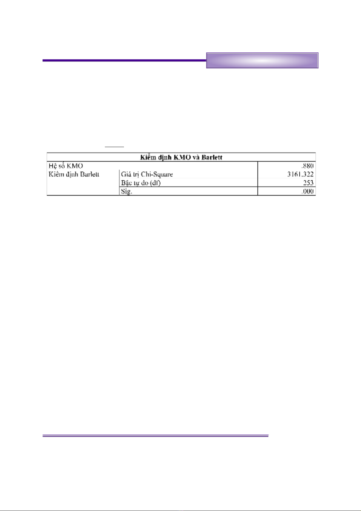 - Hệ số KMO có giá trị là 0.880, đủ điều kiện