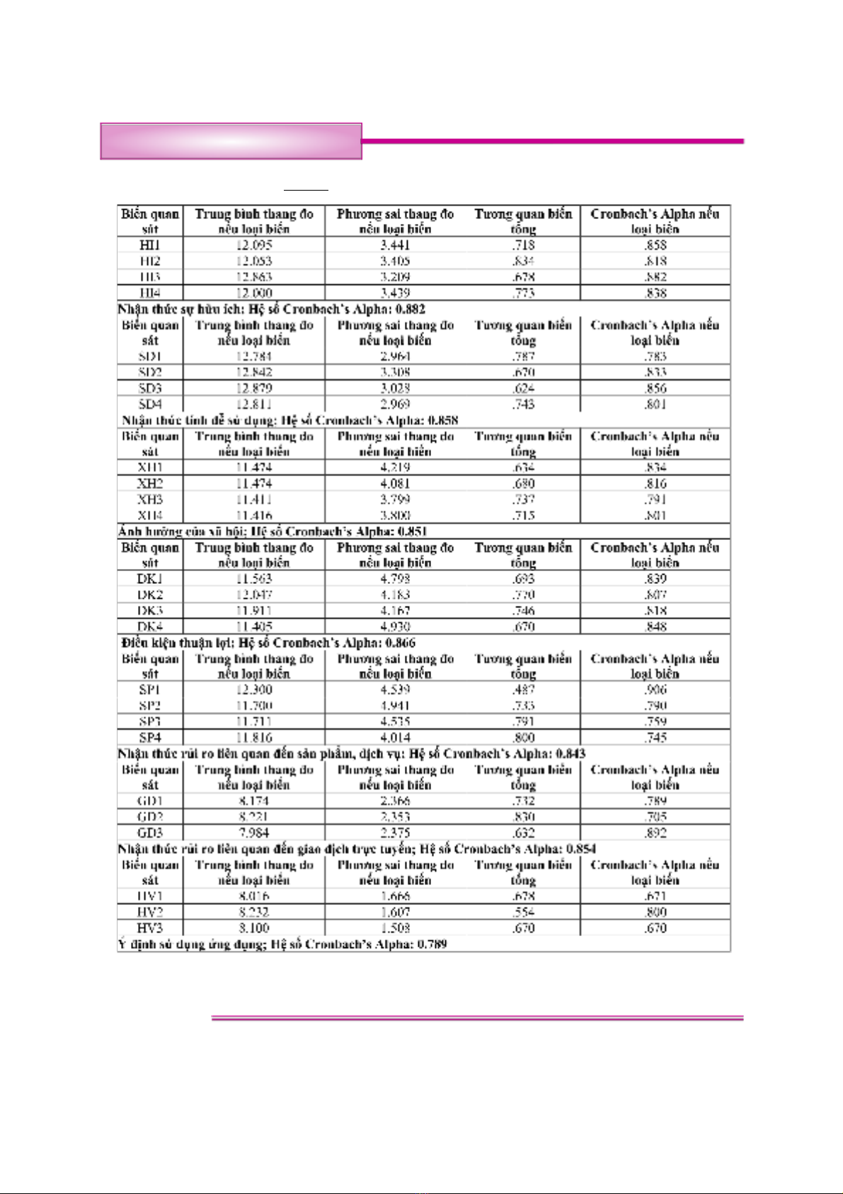 Bảng 1: Kết quả kiểm định Cronbach’s Alpha