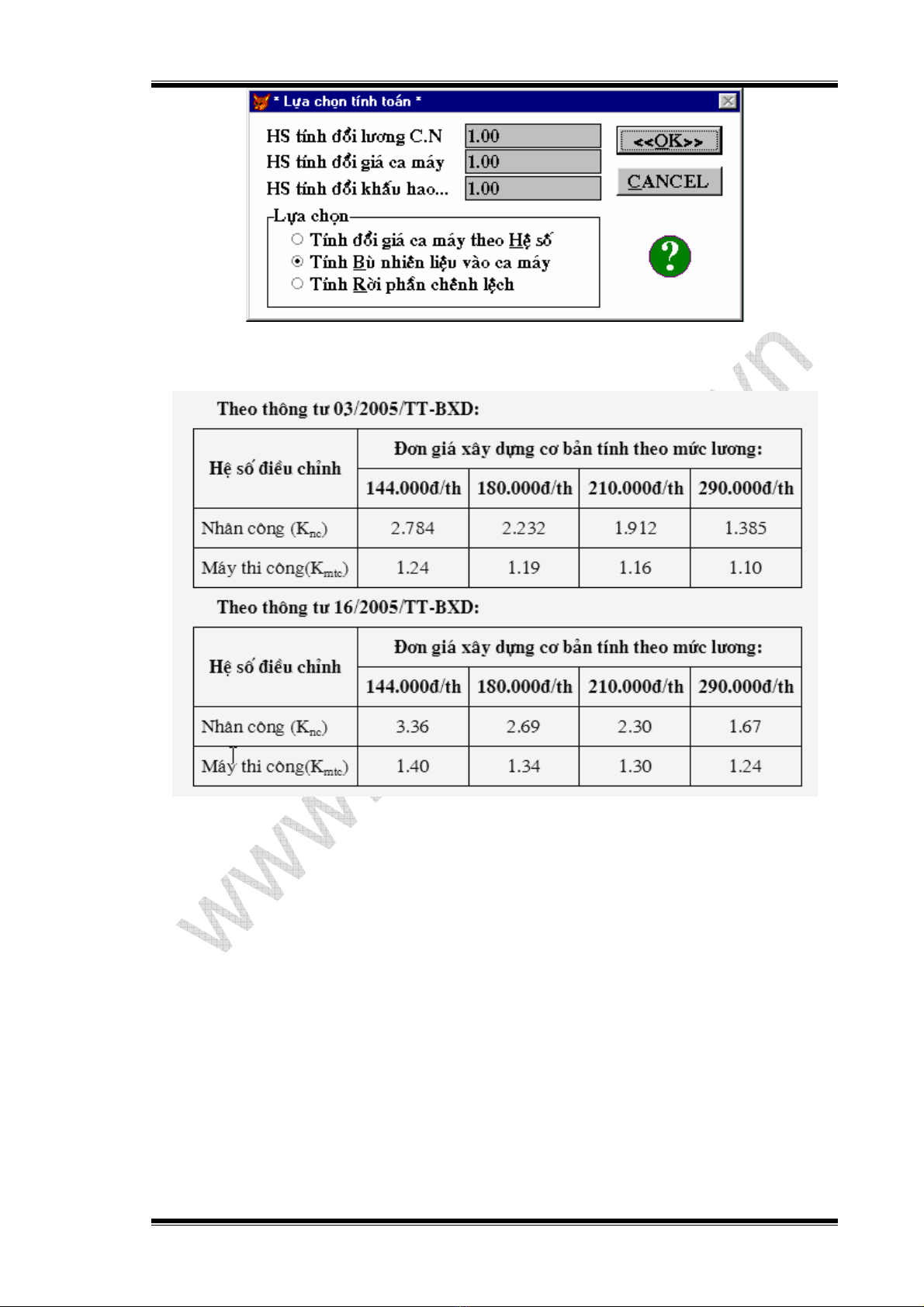 Bạn chọn phương pháp tính giá ca máy tương ứng là <TT 06/2005>, nếu đường dẫn