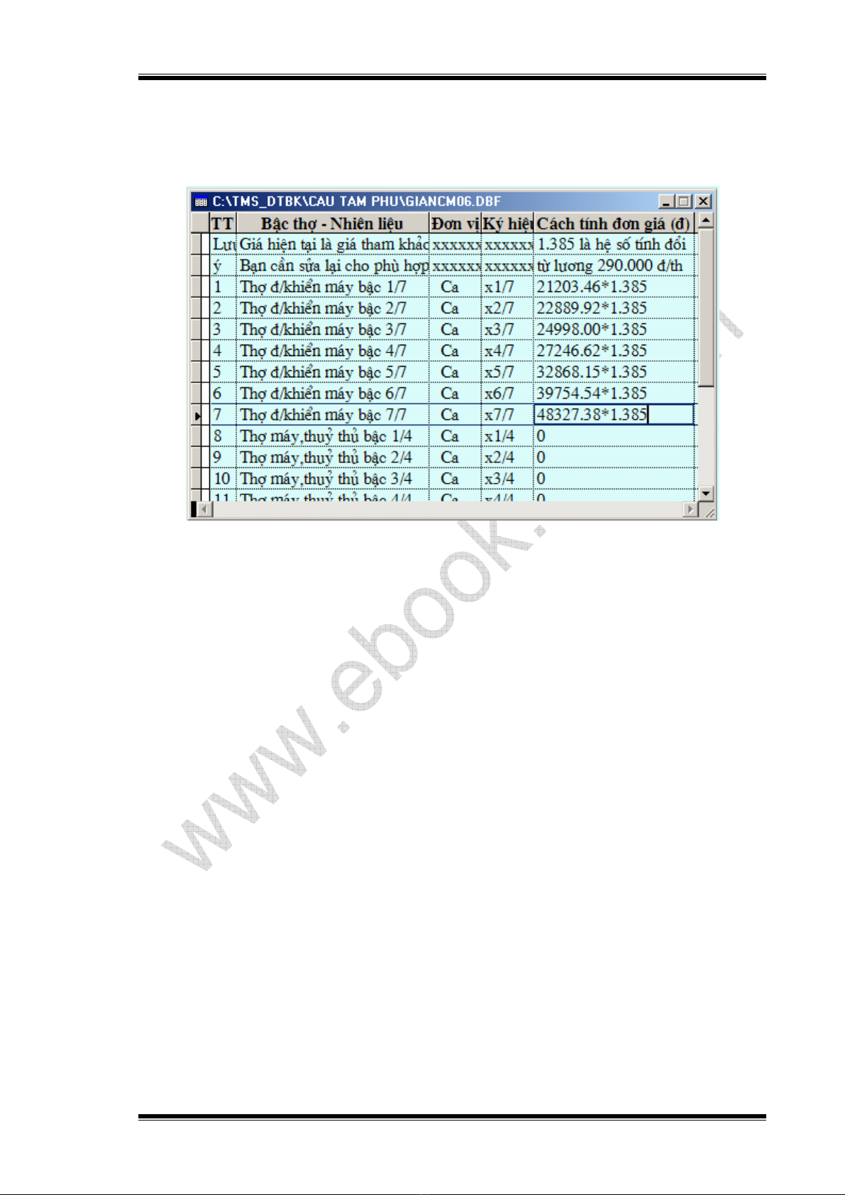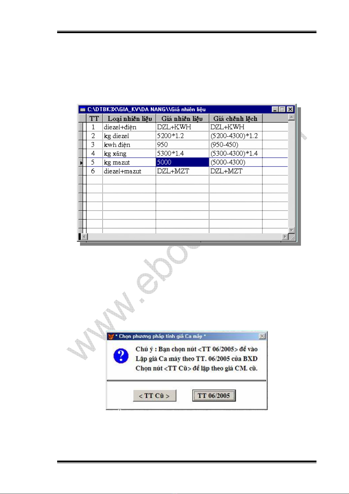 tra giá ca máy được chọn theo thông tư 06/2005/TT-BXD (...\GIAXM_06.DBF).
