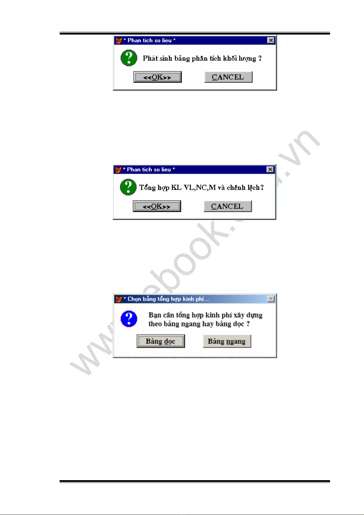 Bạn chọn <OK> nếu muốn máy phát sinh bảng tổng hợp khối lượng mới, còn chọn