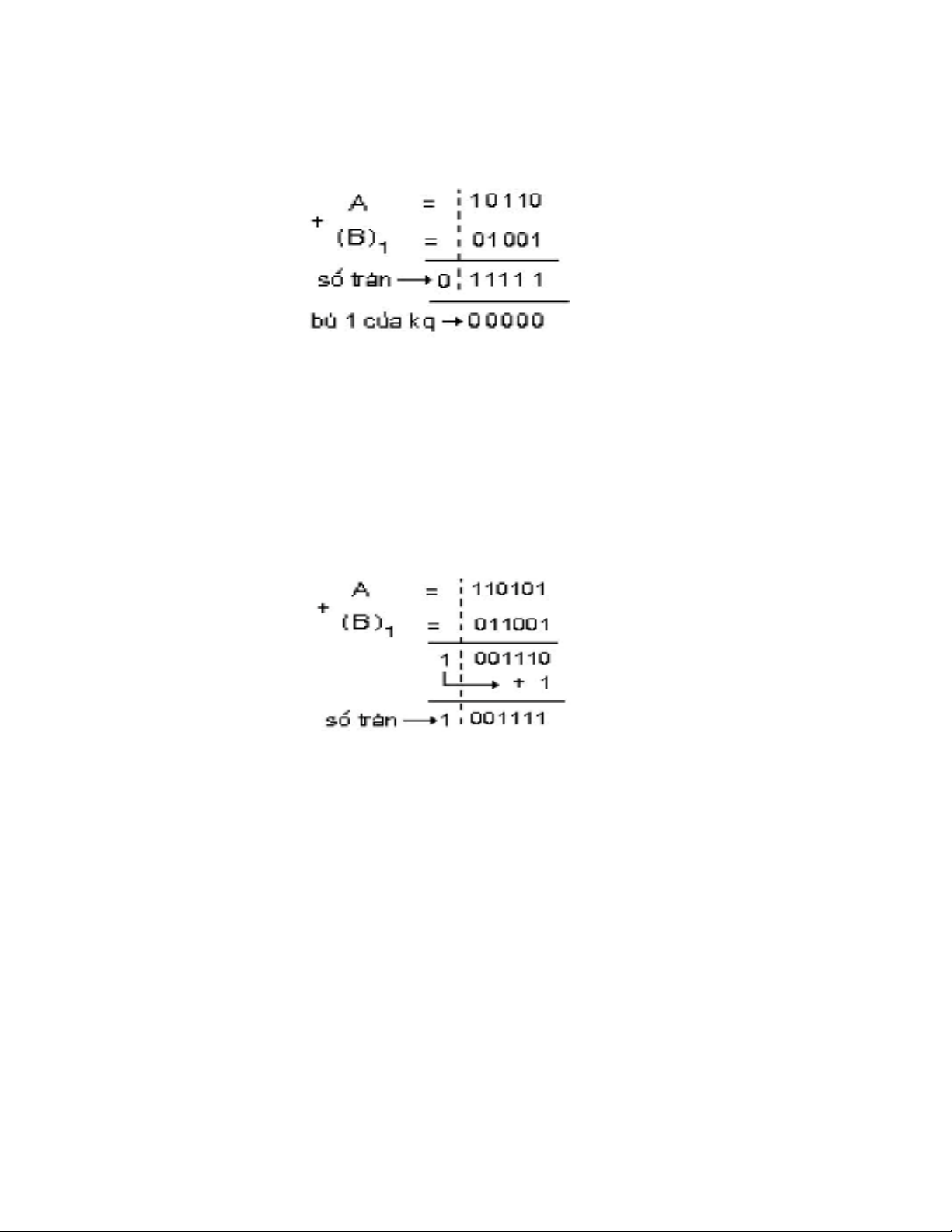 - Nếu số tràn =0, kết quả là số âm (hoặc =0) , ta phải lấy bù 1 của kết quả và thêm