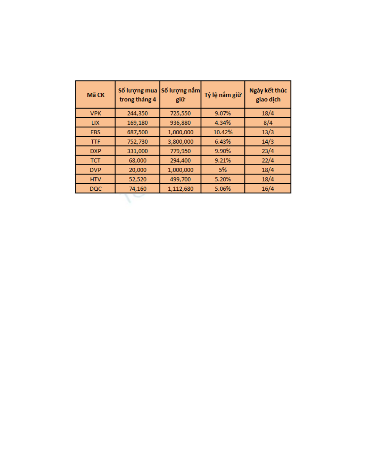tháng 3 và tháng 4. Mutual Elite Fund đã trở thành cổ đông lớn tại nhiều doanh