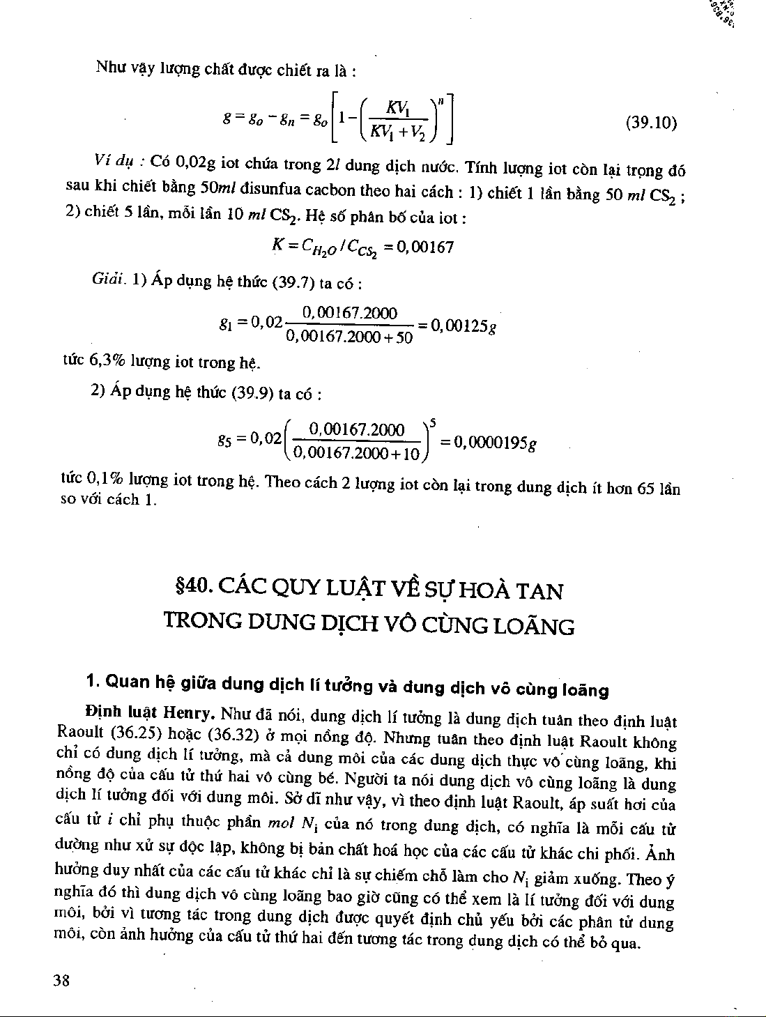 CÁC QUY LUẬT VỀ SỰ HÒA TAN TRONG DỤNG DỊCH VÔ CÙNG LOÃNG