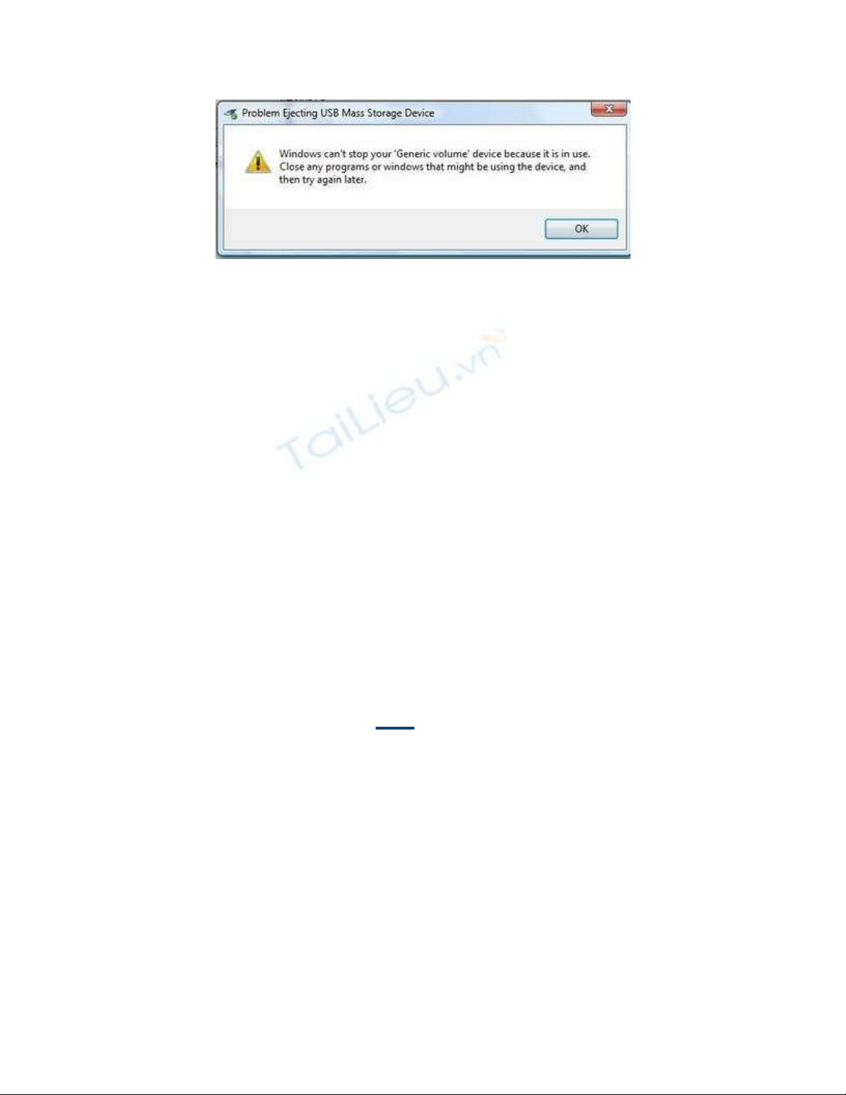 Thông báo lỗi khi thực hiện ngắt kết nối USB. Khi gặp