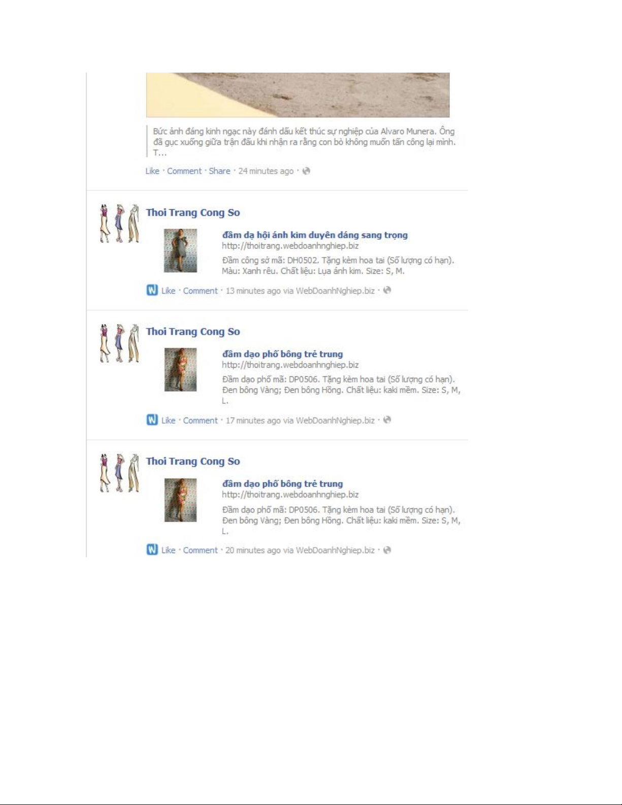 Sau khi bạn nhấp nút Share, hàng của bạn đã được đưa lên facebook, thông tin