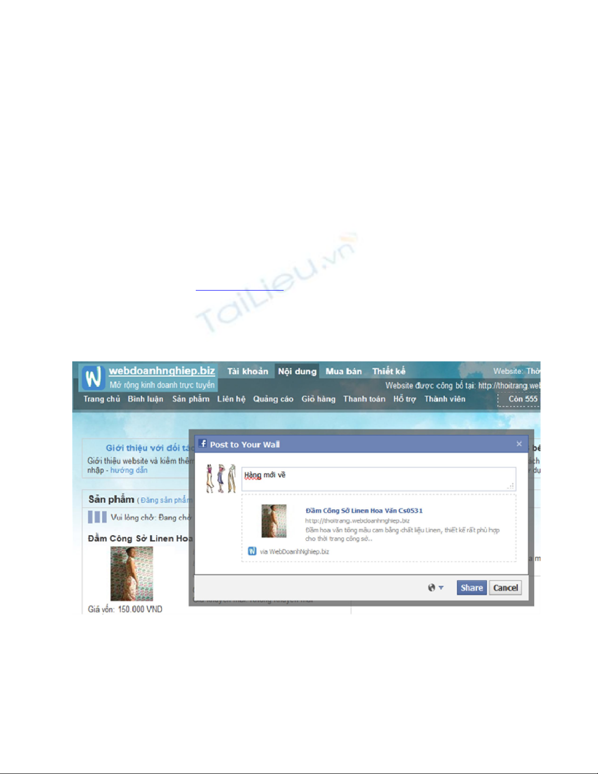 website, bạn có tùy chọn đưa hàng lên facebook của bạn.