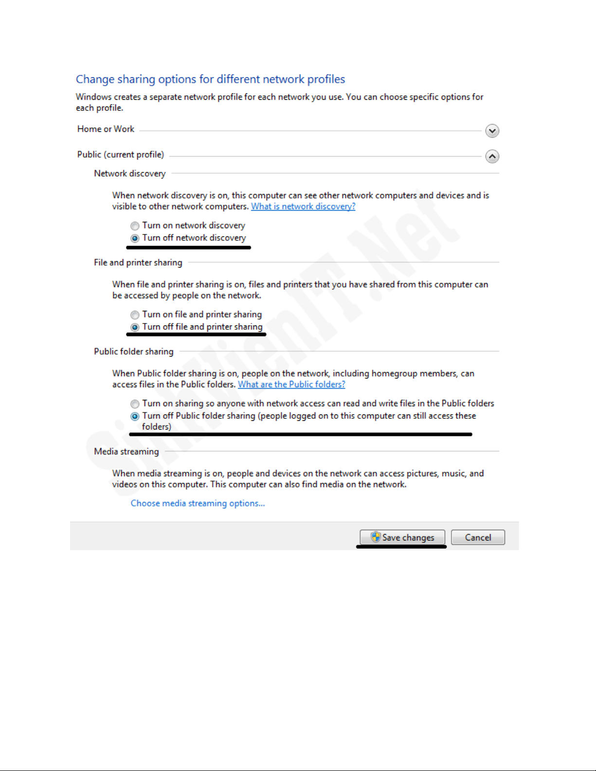 này, Windows s t thi t l p 1 s thông s giúp b n an toàn h n nh : T t file sharing, t t chẽ ự ế ậ ố ố ạ ơ ư ắ ắ ế
