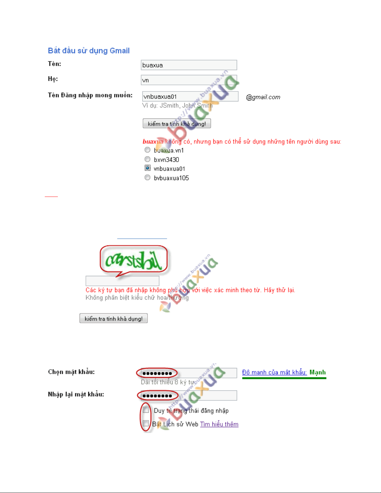 •Nh p ậTên, Họ, Tên ng nh pđă ậ (Tên ng nh p này s chính là a ch Email c a b n) tùy ý thích (Tên ng nh p chđă ậ ẽ đị ỉ ủ ạ đă ậ ỉ