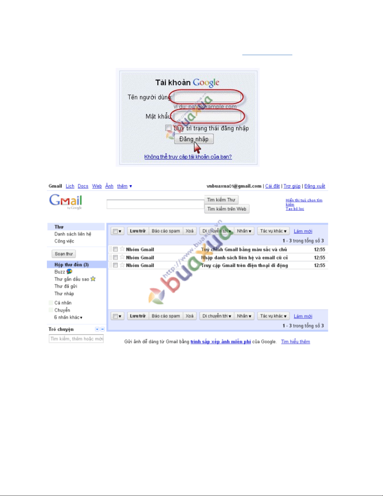 •M i khi mu n m h p th Gmail c a mình, b n hãy truy c p vào a ch ỗ ố ở ộ ư ủ ạ ậ đị ỉ http://mail.google.com/ sau ó nh p Tênđ ậ