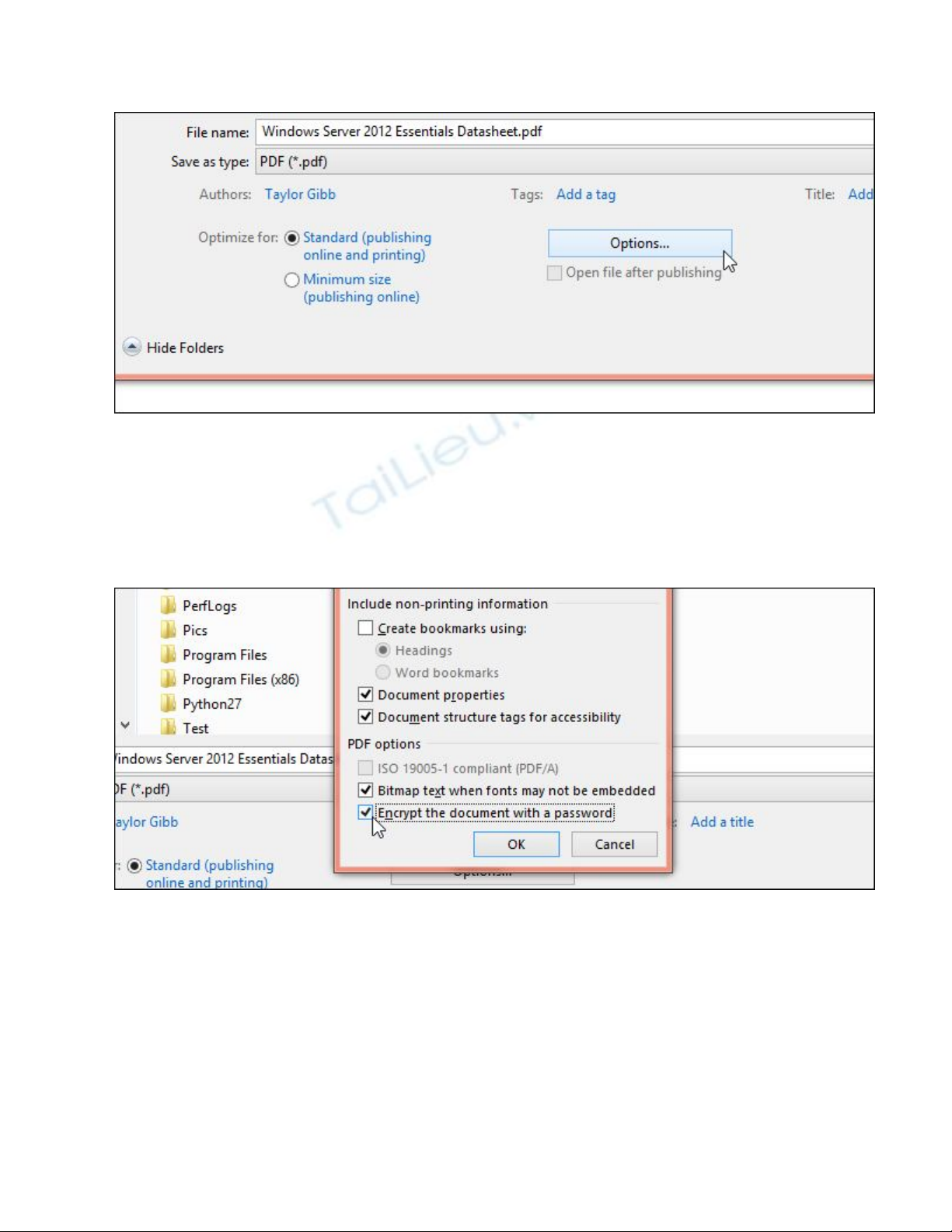 Khi hộp thoại xuất hiện, bạn sẽ thấy tùy chọn cuối cùng là để mã hóa tài liệu với