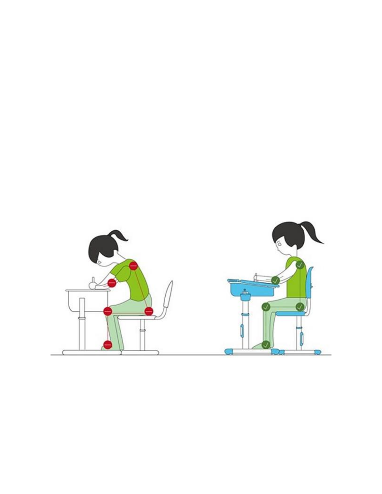 Tư thế ngồi: Ngồi ngay ngắn, lưng thẳng, không tì ngực vào bàn. Vai thăng bằng, đầu hơi