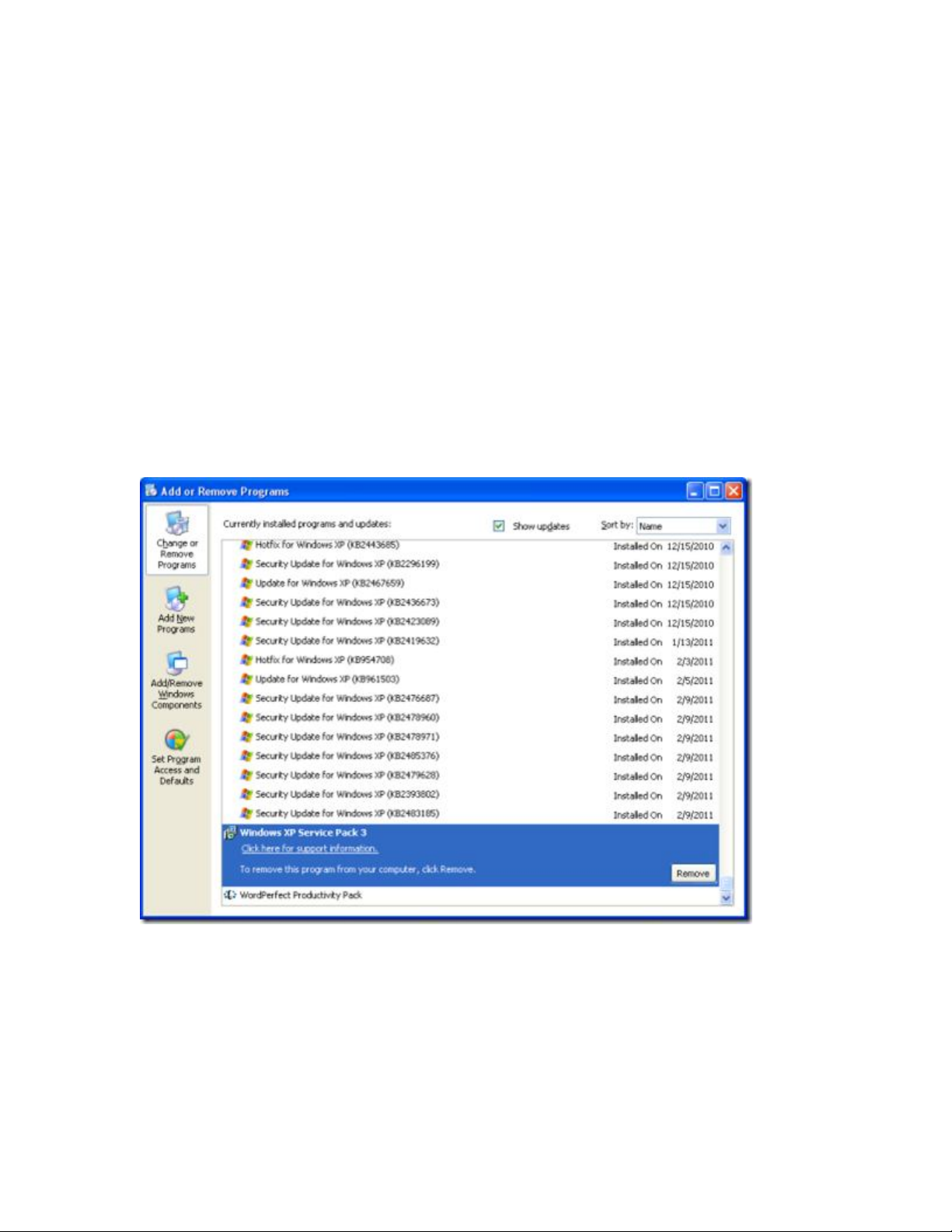SP3, gỡ bỏ cài đặt SP3 trước khi gỡ bỏ cài đặt