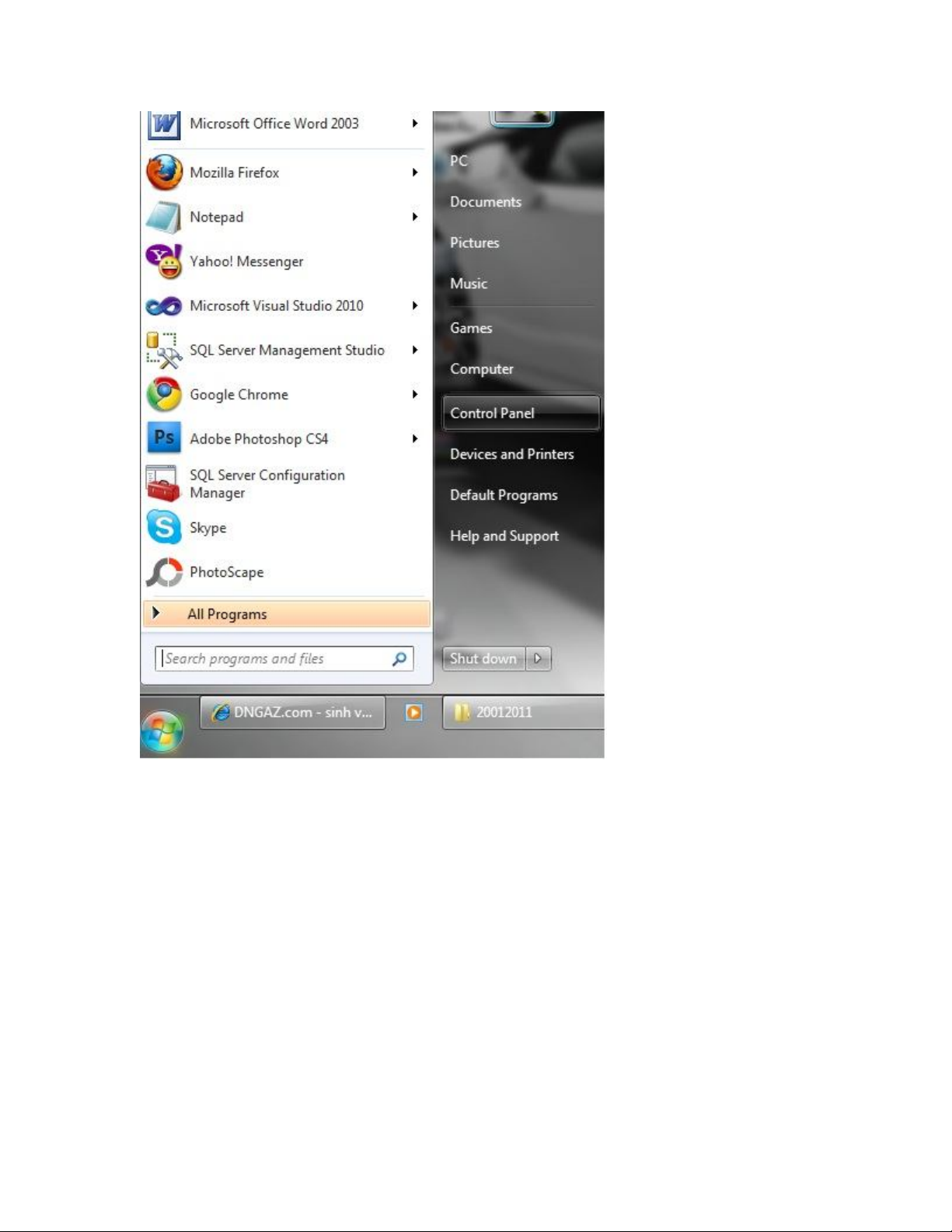Để làm điều này, nhấn Start và Control Panel. Chọn
