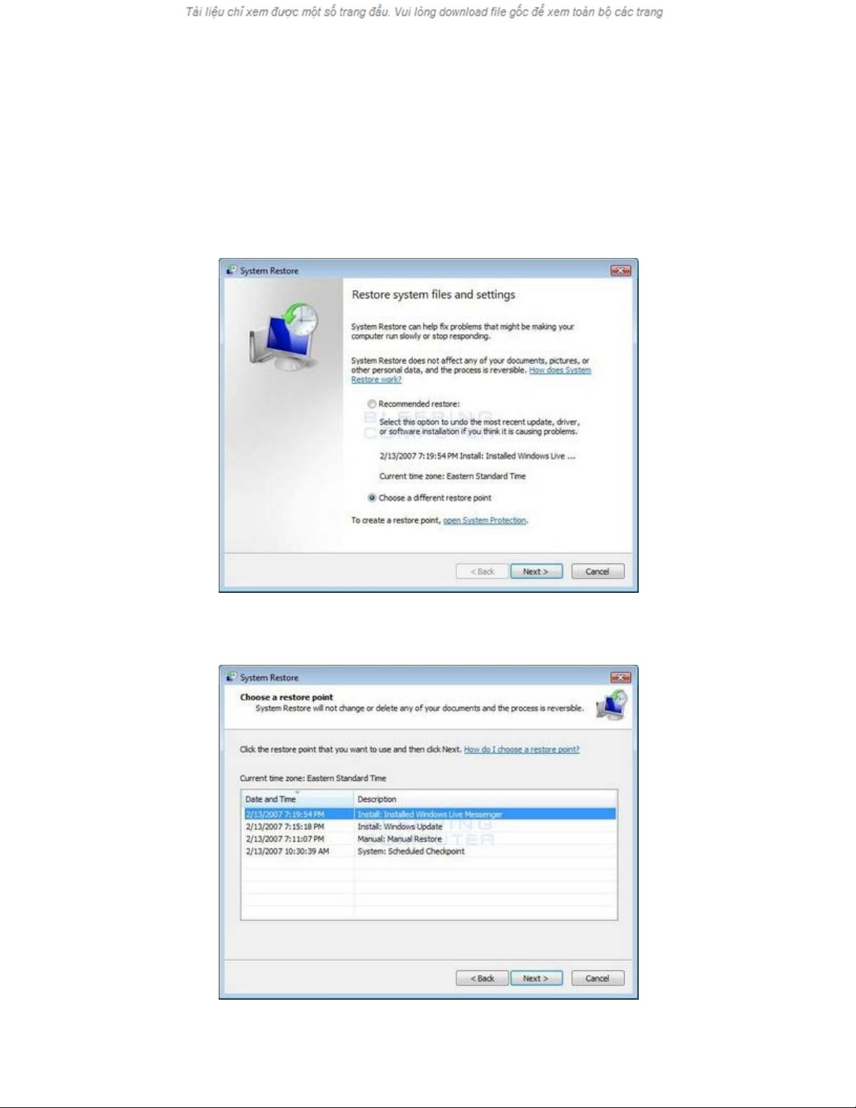 điu này, bn cn phi s dng chc năng System Restore và chn