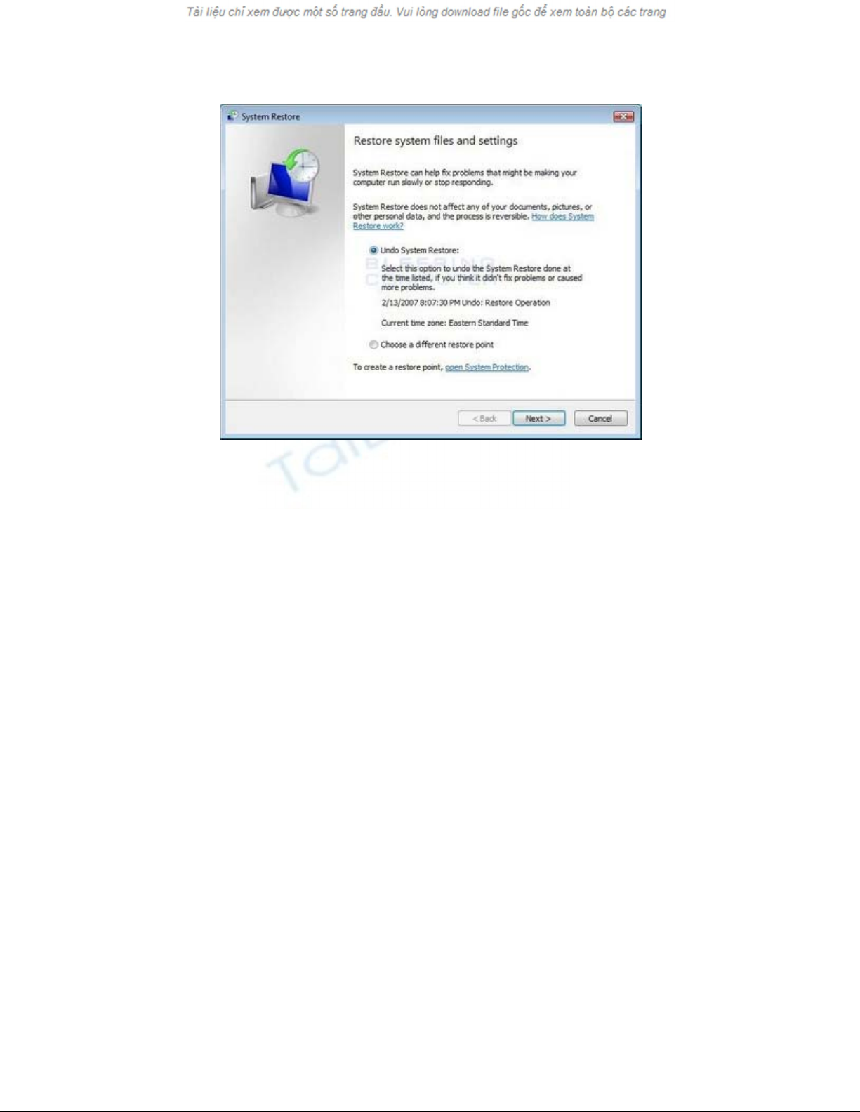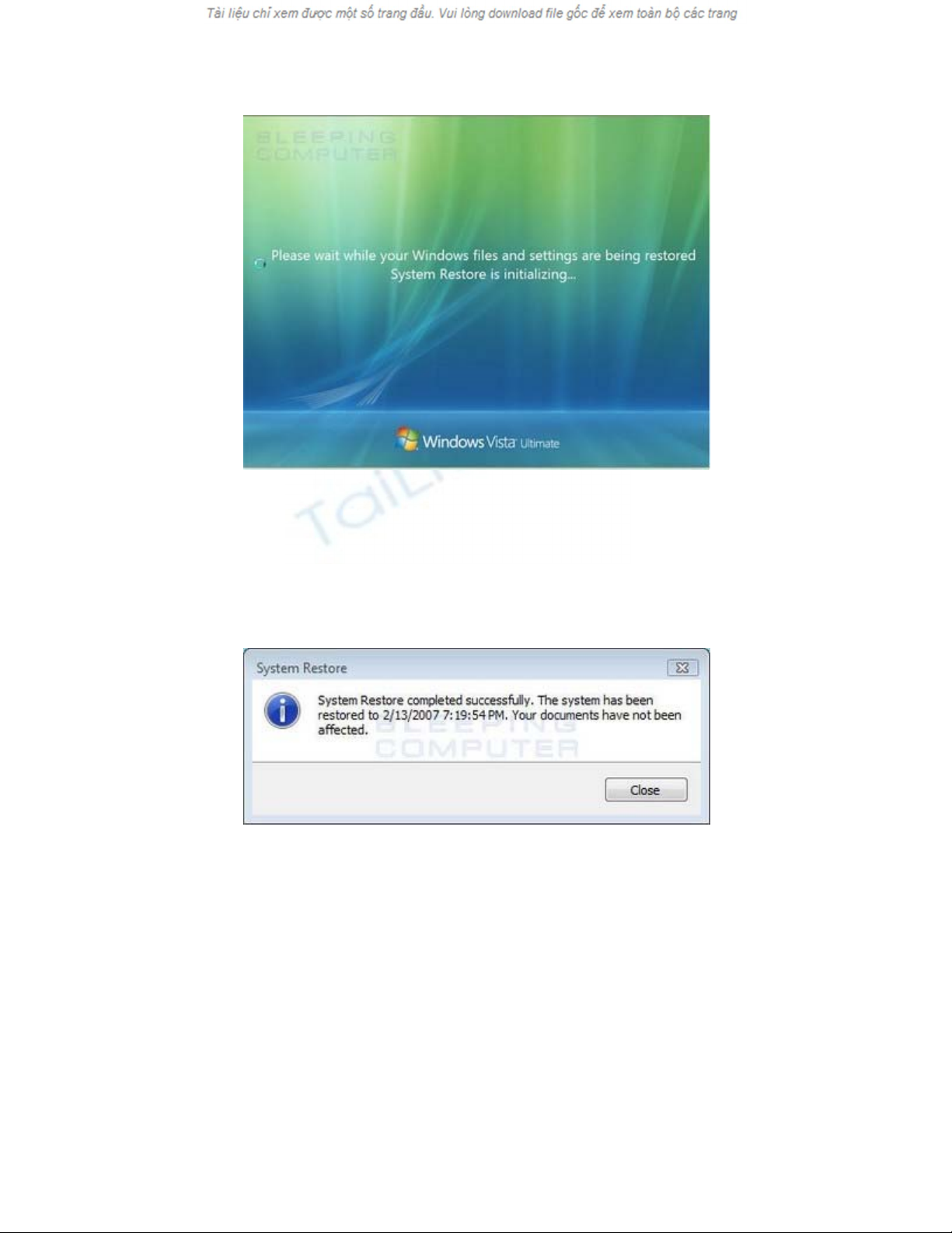 Khôi phc Windows Vista tr li trng thái trước đó: