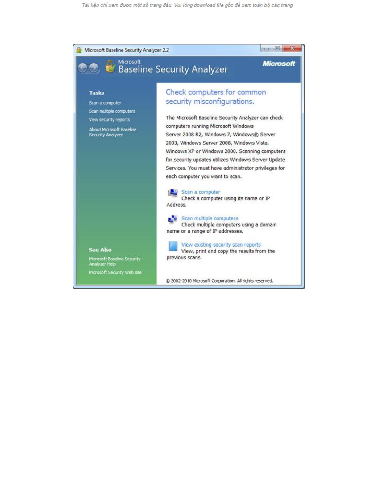 MBSA 2.2 được cung cấp hoàn toàn miễn phí tại