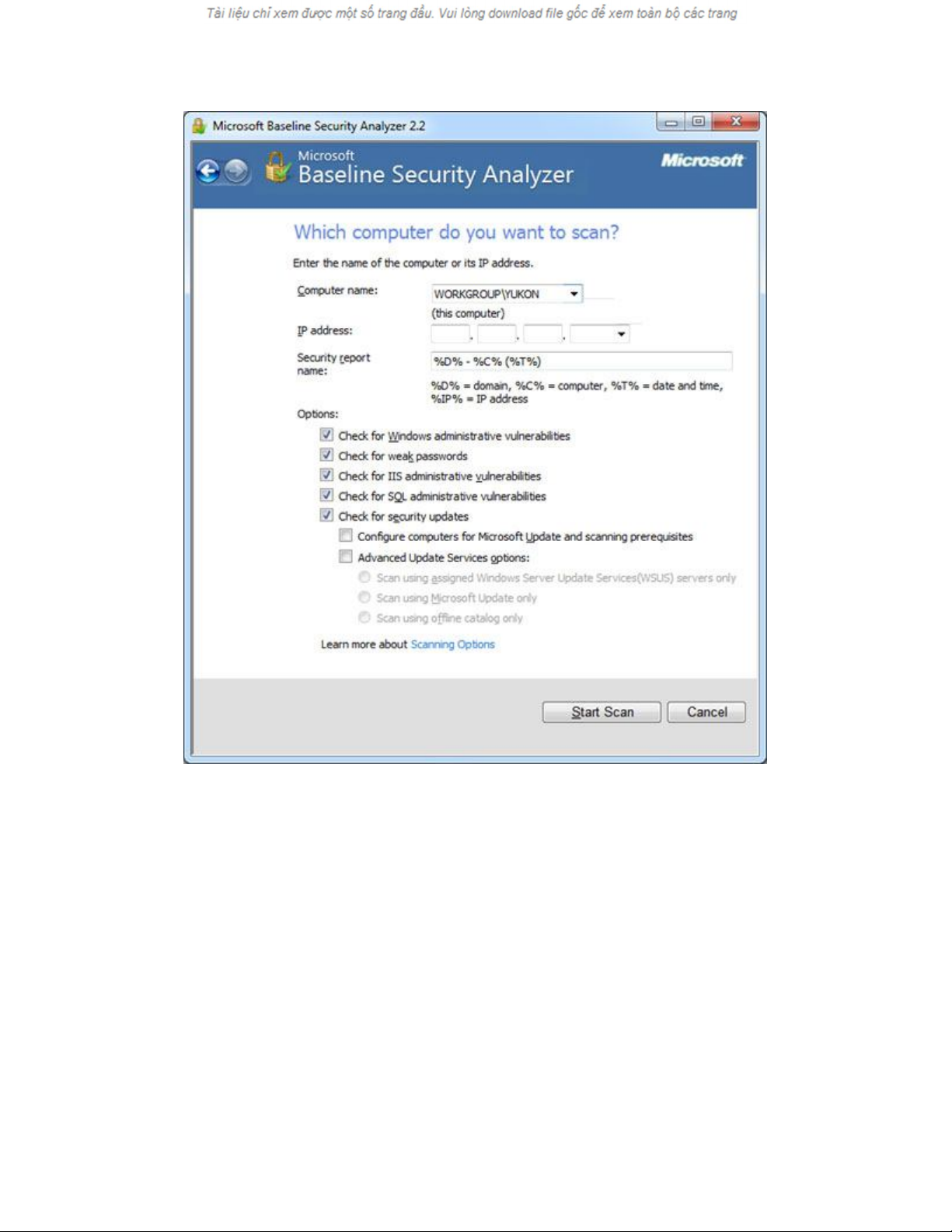 cho mục đích cá nhân. Với MBSA, các bạn có thể