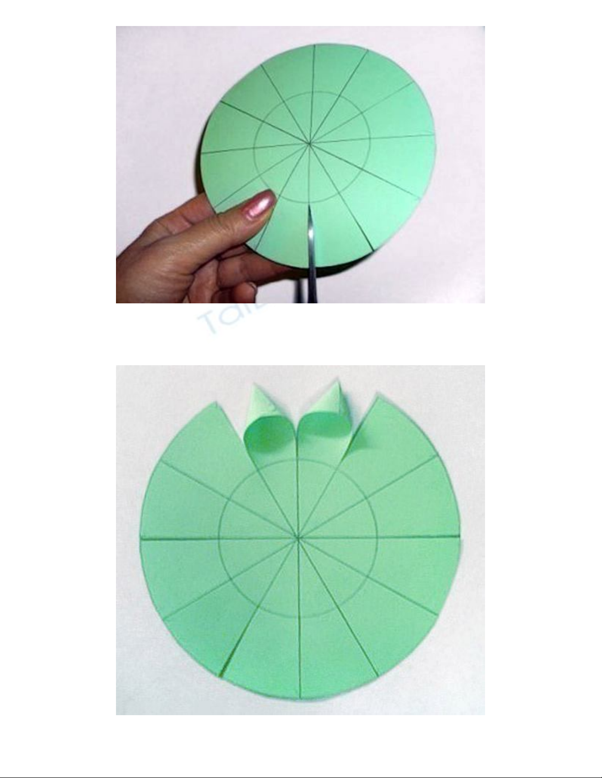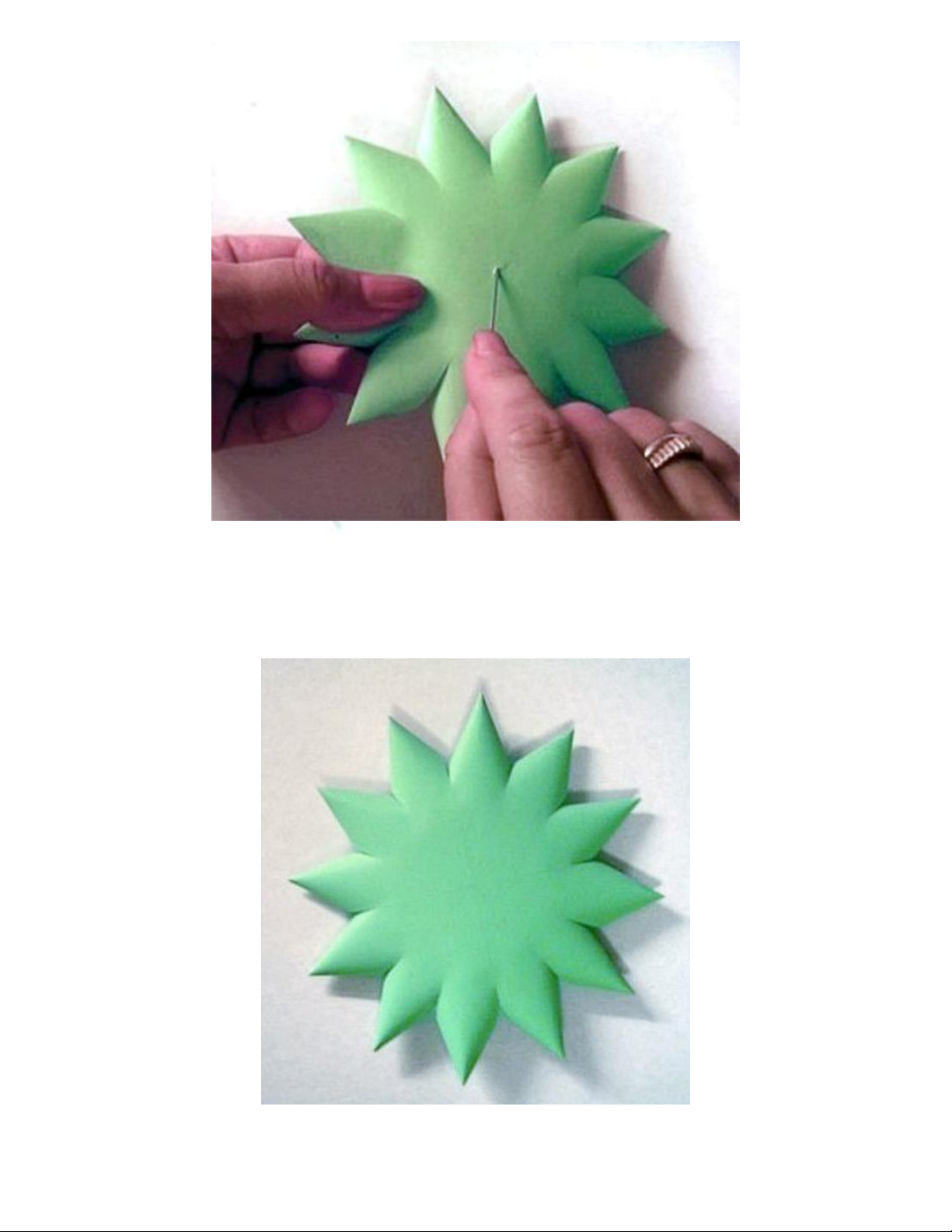 Bước 3: Gấp từng múi vừa cắt thành những đầu nhọn, dùng keo dán lại